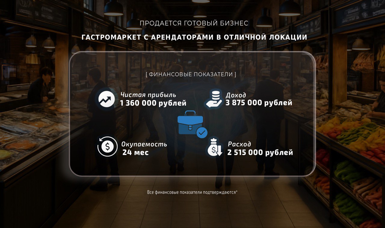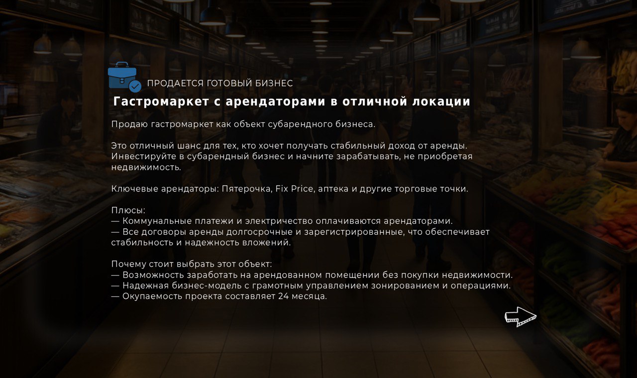 Продаю гастромаркет как объект субарендного бизнеса.