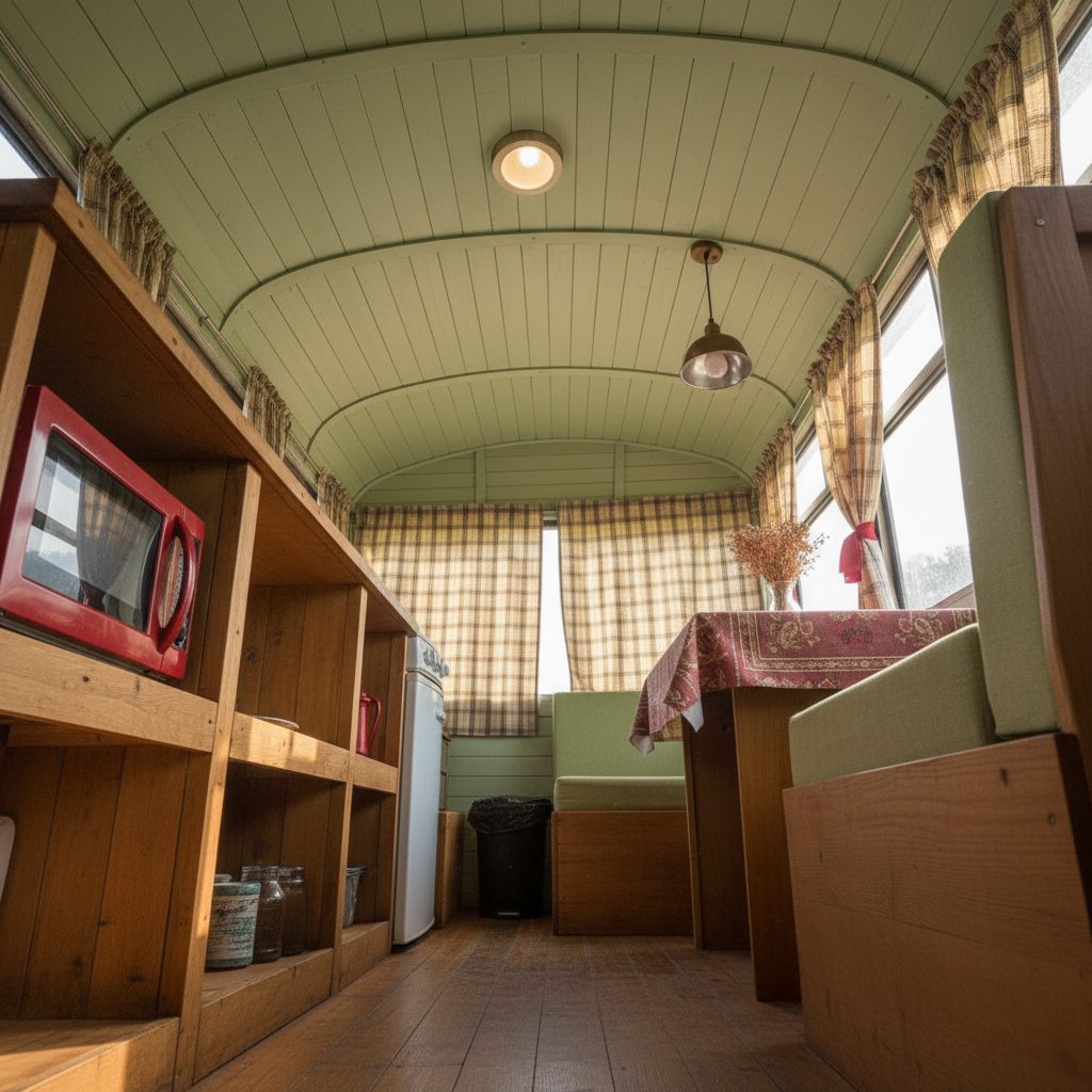 Дом на колесах расположен на участке, площадь автобуса составляет 28 квадратных метров. Внутри имеется все необходимое для комфортного проживания: мебель, бытовая техника и интерьер, продуманный до мелочей. Бизнес мобильный, автобус можно легко перевезти в любое место по вашему желанию.