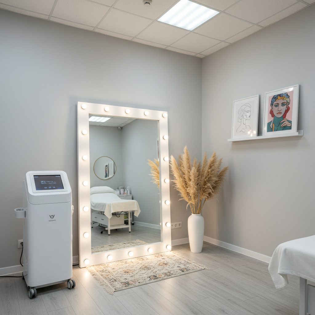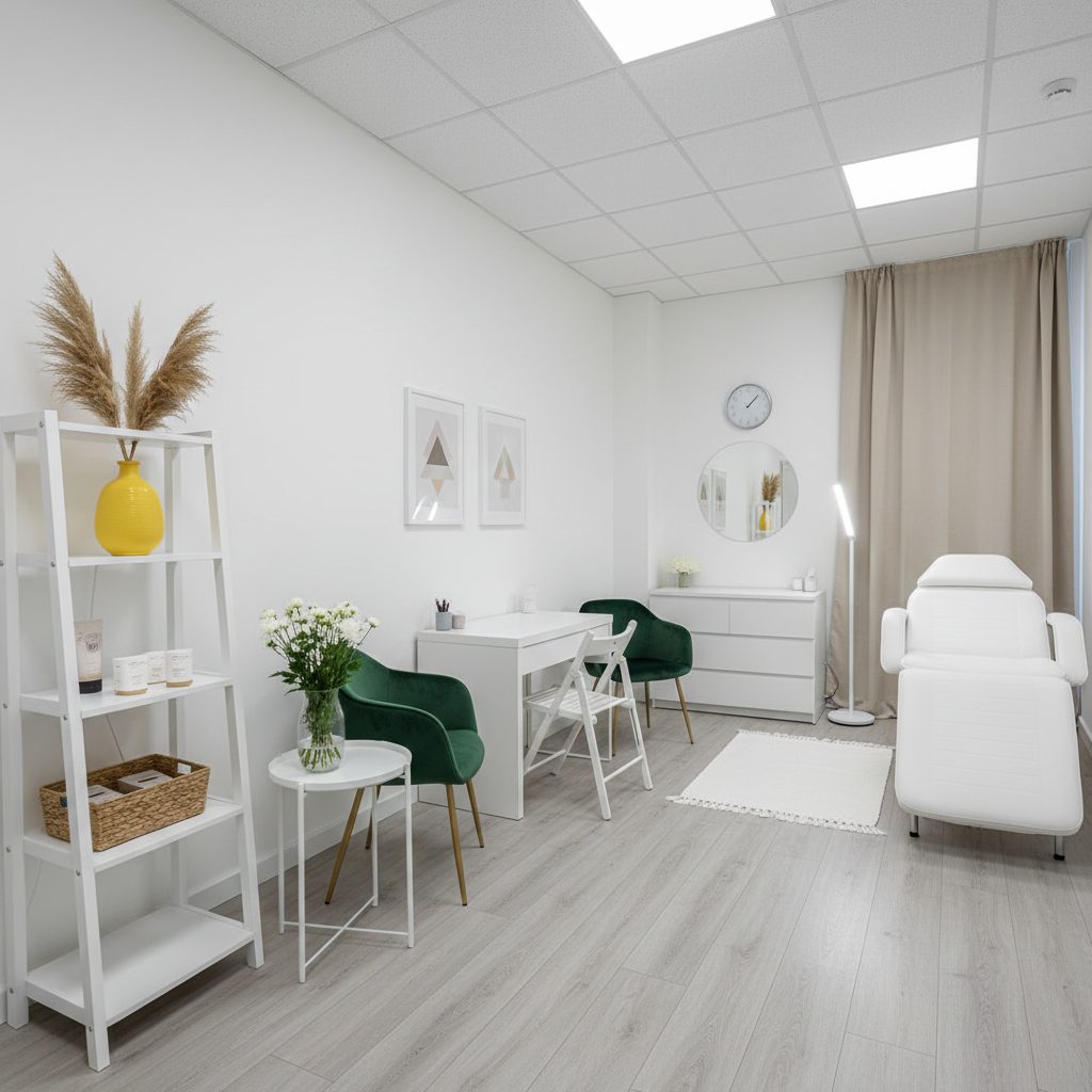 Студия площадью 25 м² находится в коммерческом здании, всего в пяти минутах пешком от метро и МЦД. Помещение светлое и уютное, с современным ремонтом. Внутри есть всё необходимое оборудование для работы: аппарат для лазерной эпиляции, удобная кожаная кушетка, косметологическое зеркало с увеличителем, столик для процедур, стерилизатор инструментов и многое другое. Для комфорта клиентов имеется зона ожидания с кофемашиной и зеркало в пол с подсветкой.