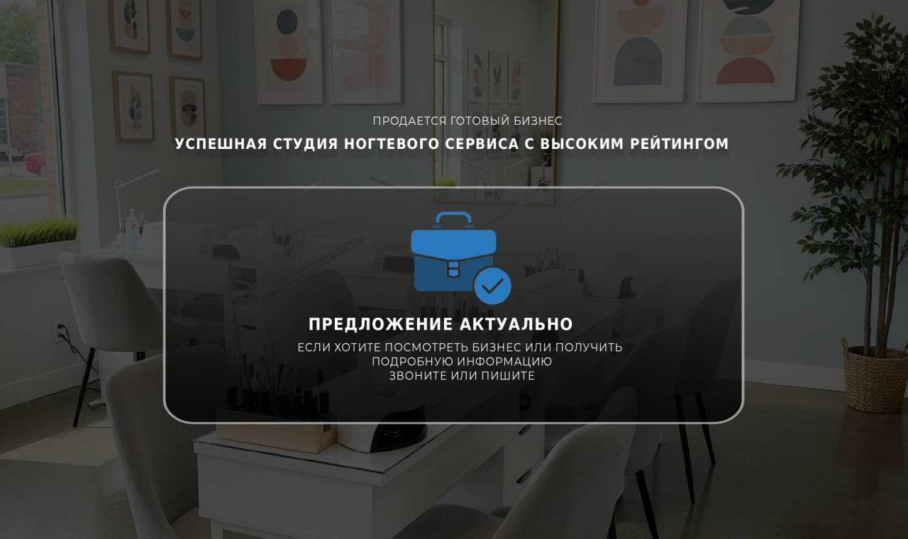 Продаю маникюрный салон, успешно функционирующий на протяжении 6 лет!