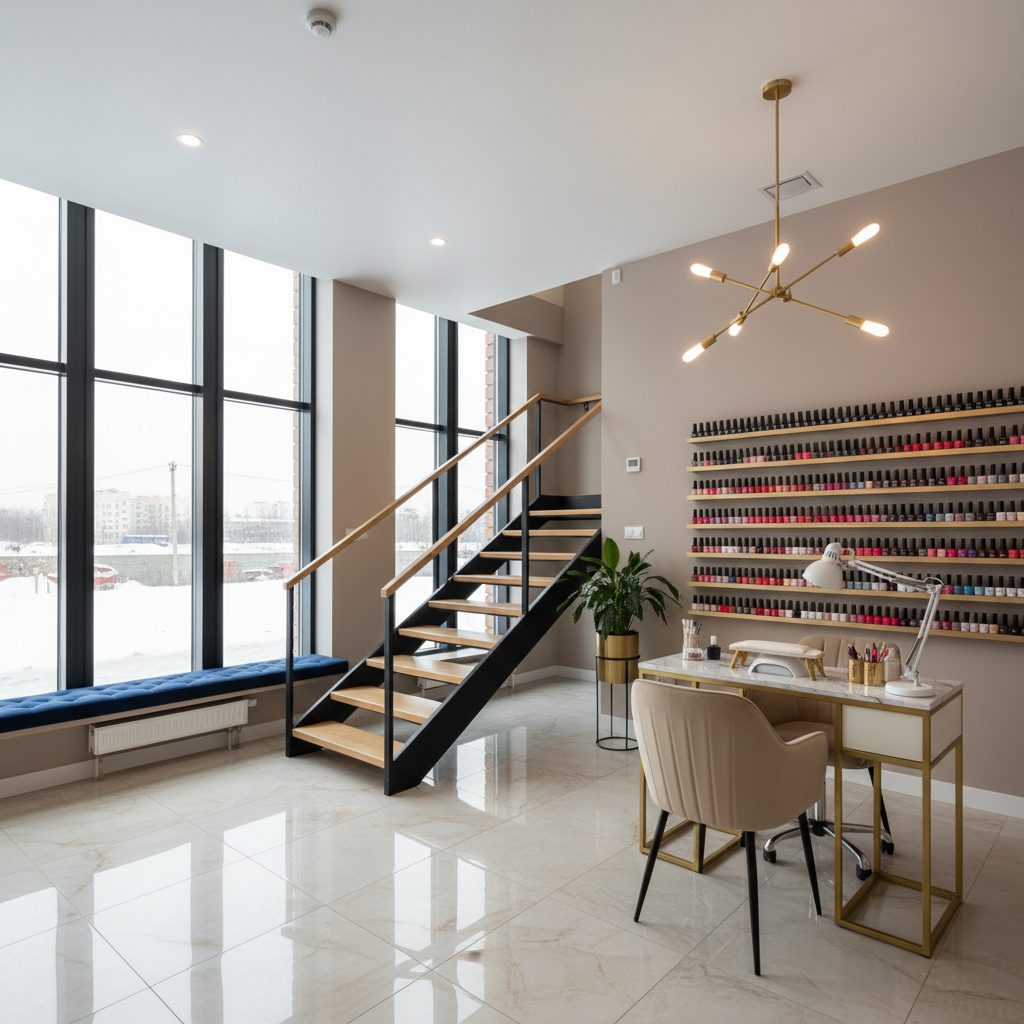 Расположение: бизнес-класс ЖК, м. Кунцевская. Площадь: 60 м² (40 м² первый этаж, 20 м² антресольный этаж) со стильным и современным интерьером. Помещение арендуется у собственника с депозитом за последний месяц. Все необходимое оборудование для комфортной работы мастеров и клиентов уже установлено, включая маникюрные и педикюрные рабочие места, оборудование для стерилизации, парикмахерское кресло и зоны для визажа.