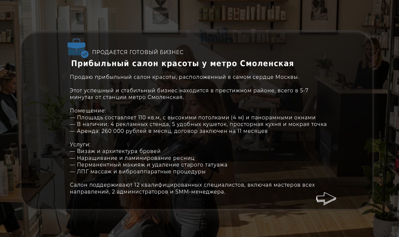 Продаю прибыльный салон красоты, расположенный в самом сердце Москвы.