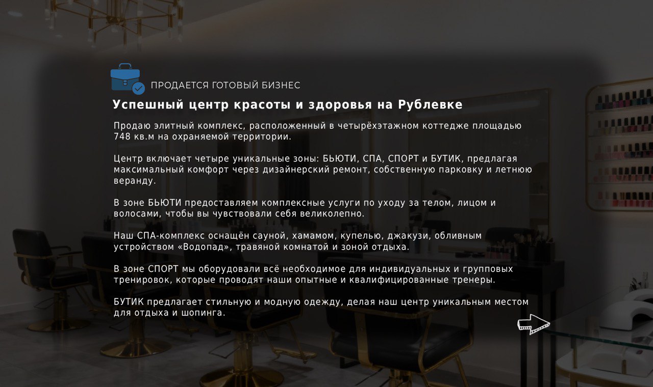 Обширная клиентская база из 1 221 клиента активно пользуется депозитной системой абонементов и скидок, что поддерживает их лояльность. Команда из 22 профессионалов готова продолжать работу с новым владельцем.