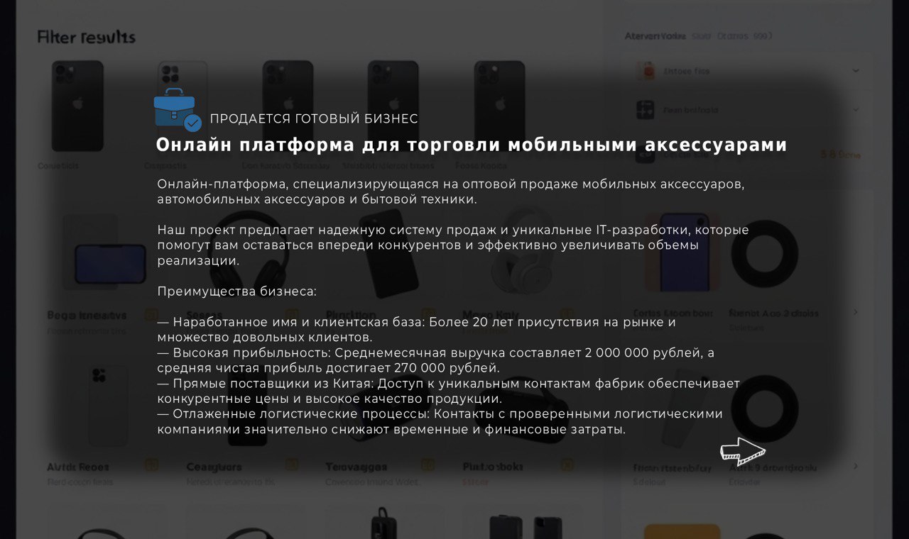 Онлайн-платформа, специализирующаяся на оптовой продаже мобильных аксессуаров, автомобильных аксессуаров и бытовой техники.