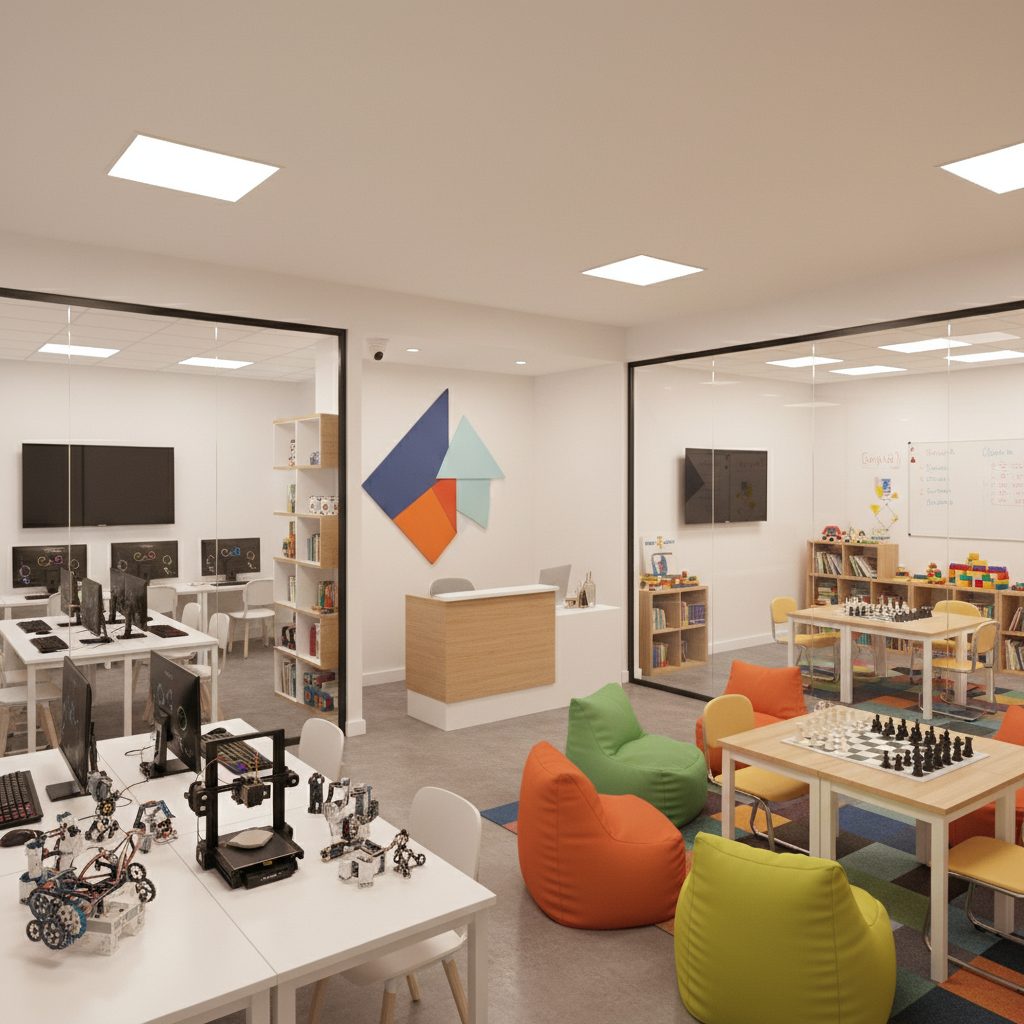 Действующая школа дополнительного образования для детей от 4-х до 17 лет, успешно работающая более 3 лет. В школе реализуются востребованные направления: программирование, робототехника, шахматы и английский язык. Есть образовательная лицензия.