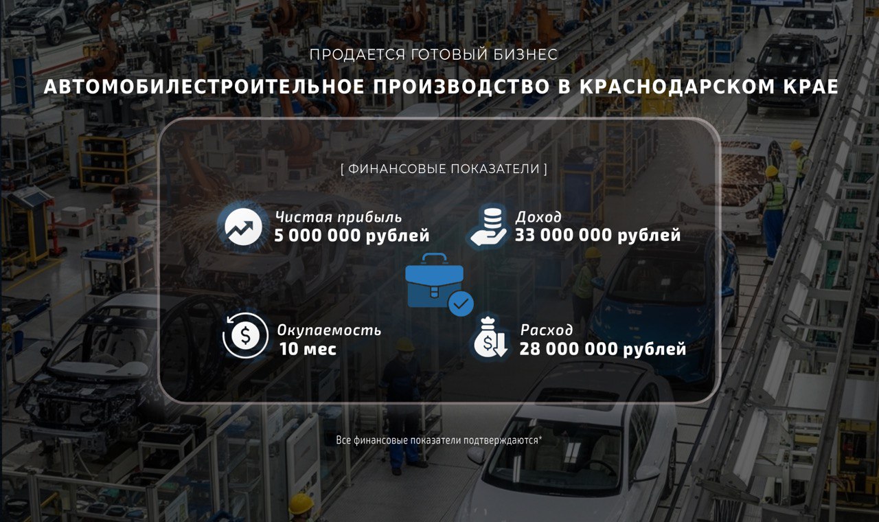 Стоимость бизнеса составляет 50 000 000 рублей. Выручка — 33 000 000 рублей, расходы — 28 000 000 рублей. Средняя чистая прибыль — 5 000 000 рублей ежемесячно!