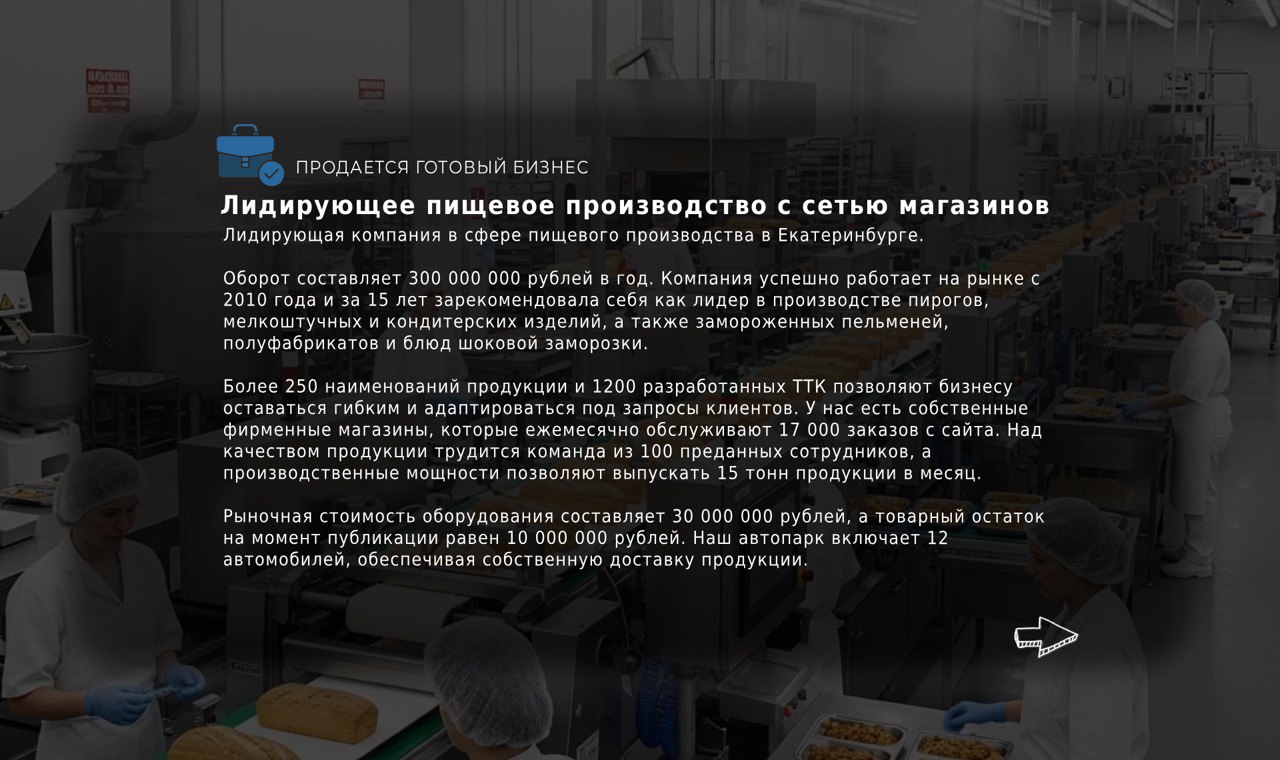 Лидирующая компания в сфере пищевого производства в Екатеринбурге.
