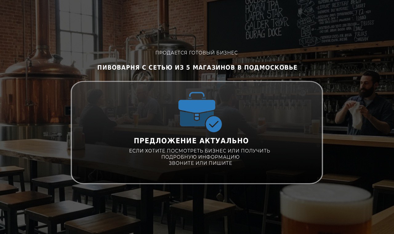 Продаю пивоварню с сетью из 5 магазинов разливного пива.