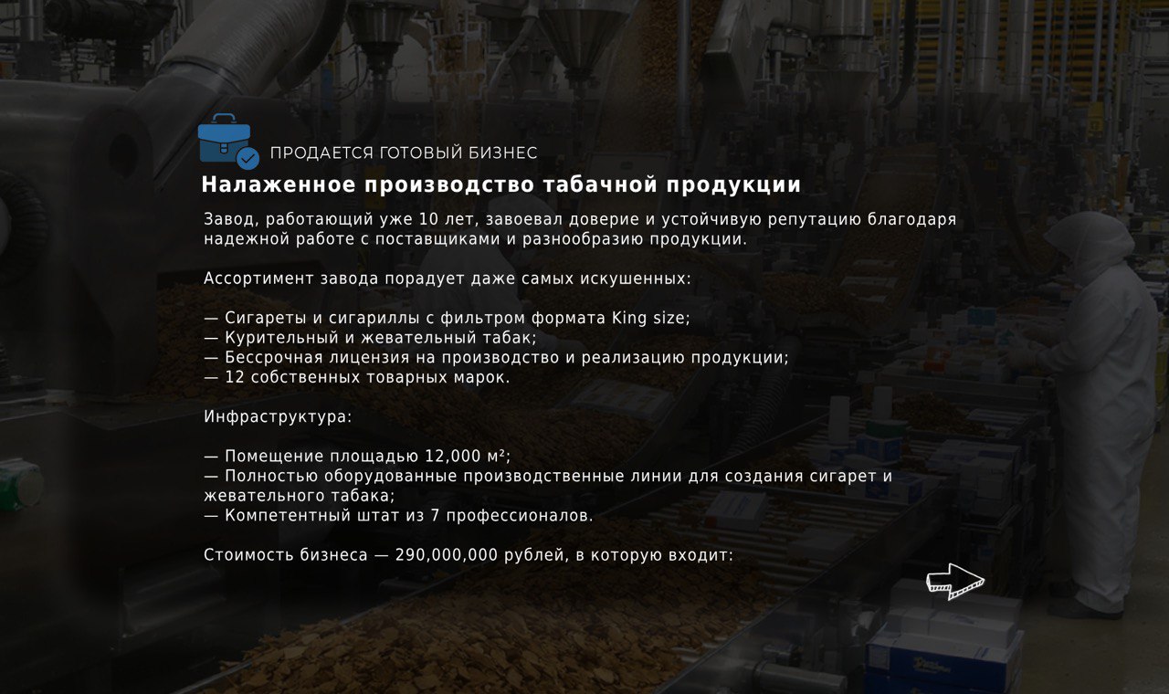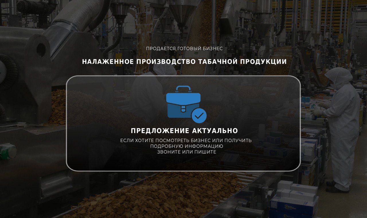 Продаётся успешный бизнес по производству табачной продукции в Воронежской области!