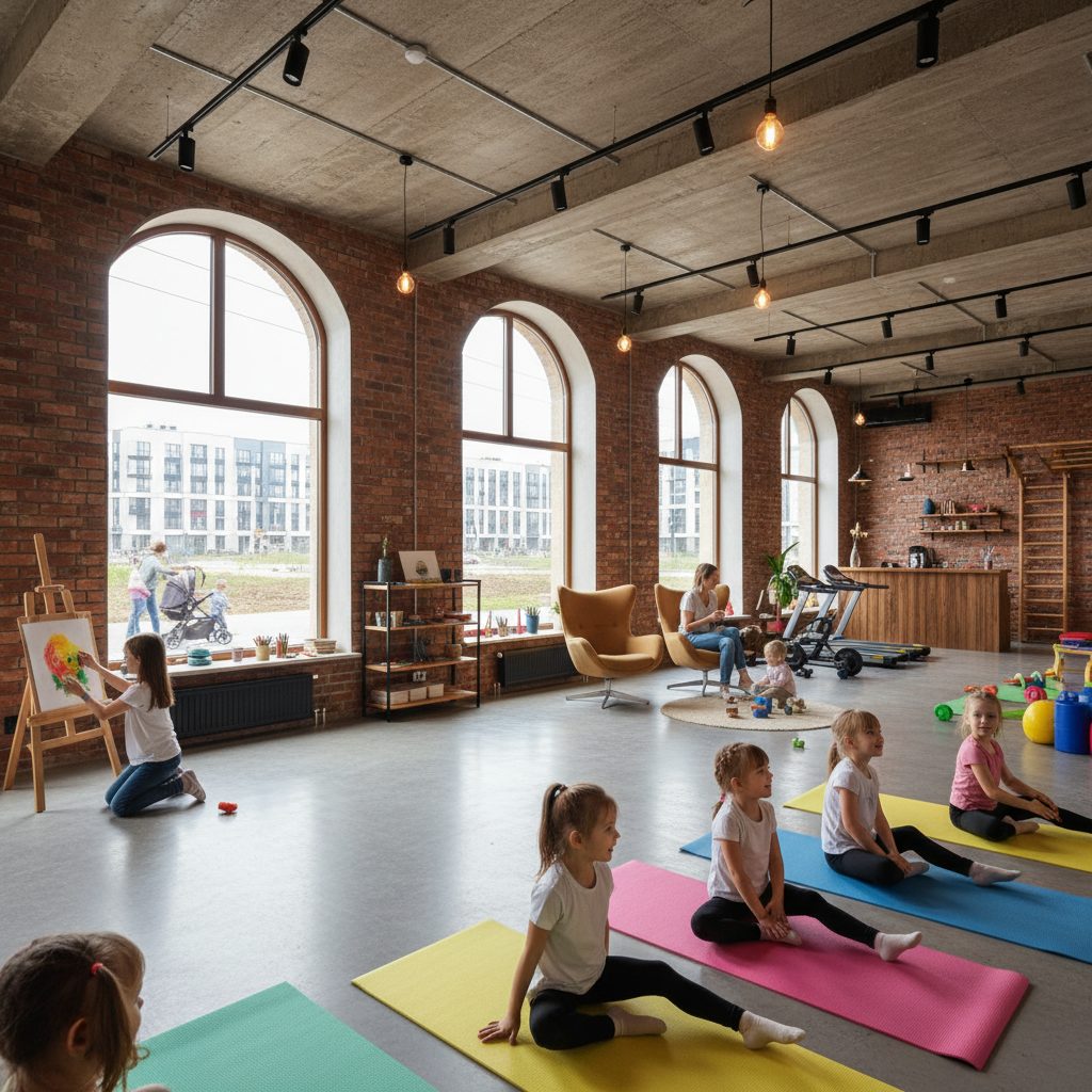 Предлагается к продаже центр развития и досуга, который успешно функционирует более 3 лет. Это заведение с современным ремонтом в стиле Лофт и панорамными окнами включает в себя три полностью оснащенных зала, тренажерный зал и дополнительные помещения на втором этаже. Центр расположен на первом этаже жилого дома в новом микрорайоне, что обеспечивает высокий поток клиентов. Основная целевая аудитория – молодые семьи с детьми, что открывает возможности для расширения услуг, особенно в области детского фитнеса и творческих занятий.