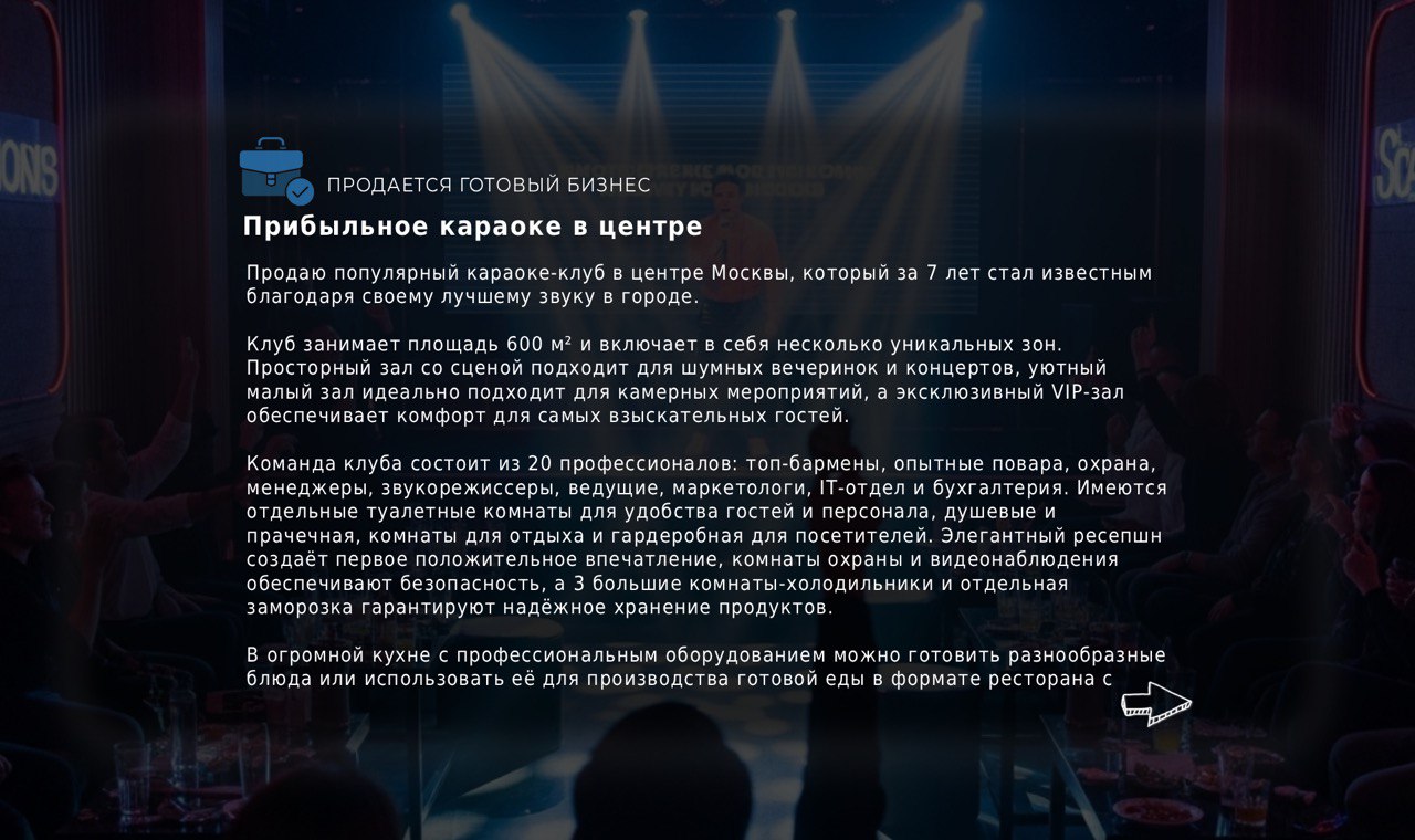 Продаю популярный караоке-клуб в центре Москвы, который за 7 лет стал известным благодаря своему лучшему звуку в городе.