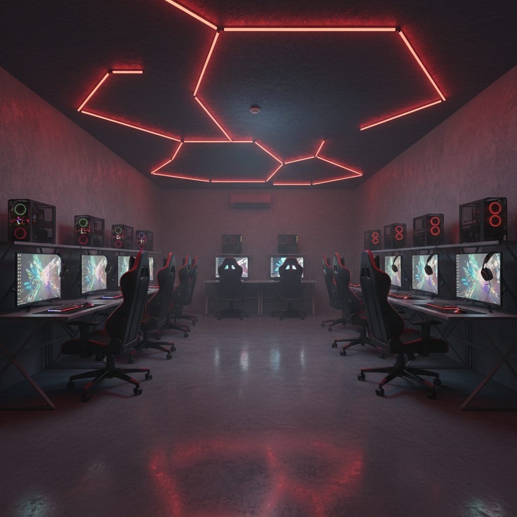 Специфика бизнеса: стандартные зоны с 20 ПК, VIP-зоны с 6 и 5 ПК соответственно. Все комплектующие новые и на гарантии. Установлено современное оборудование, включая видеокарты 3060 и 5060, а также механические клавиатуры и водяное охлаждение.