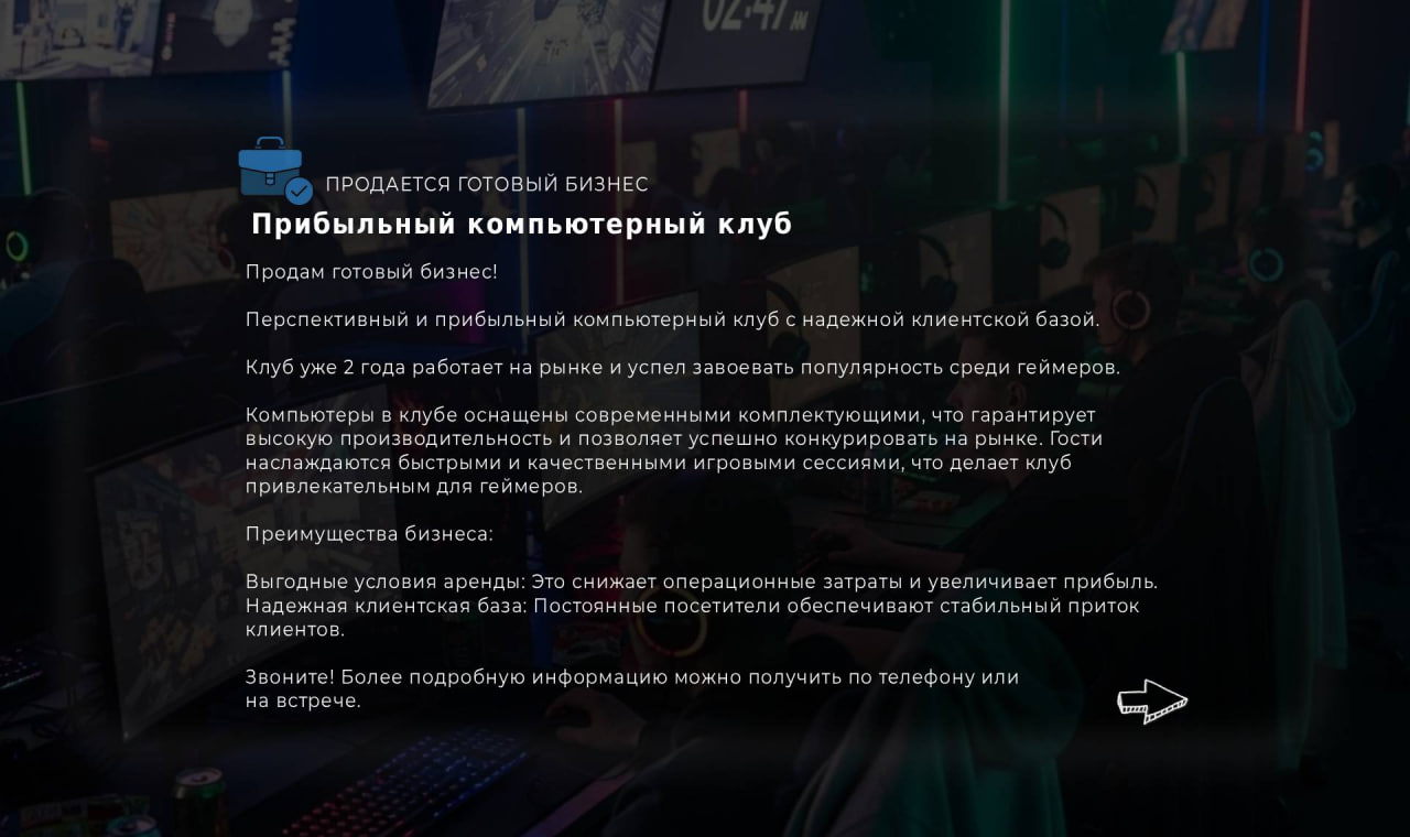 Перспективный и прибыльный компьютерный клуб с надежной клиентской базой.