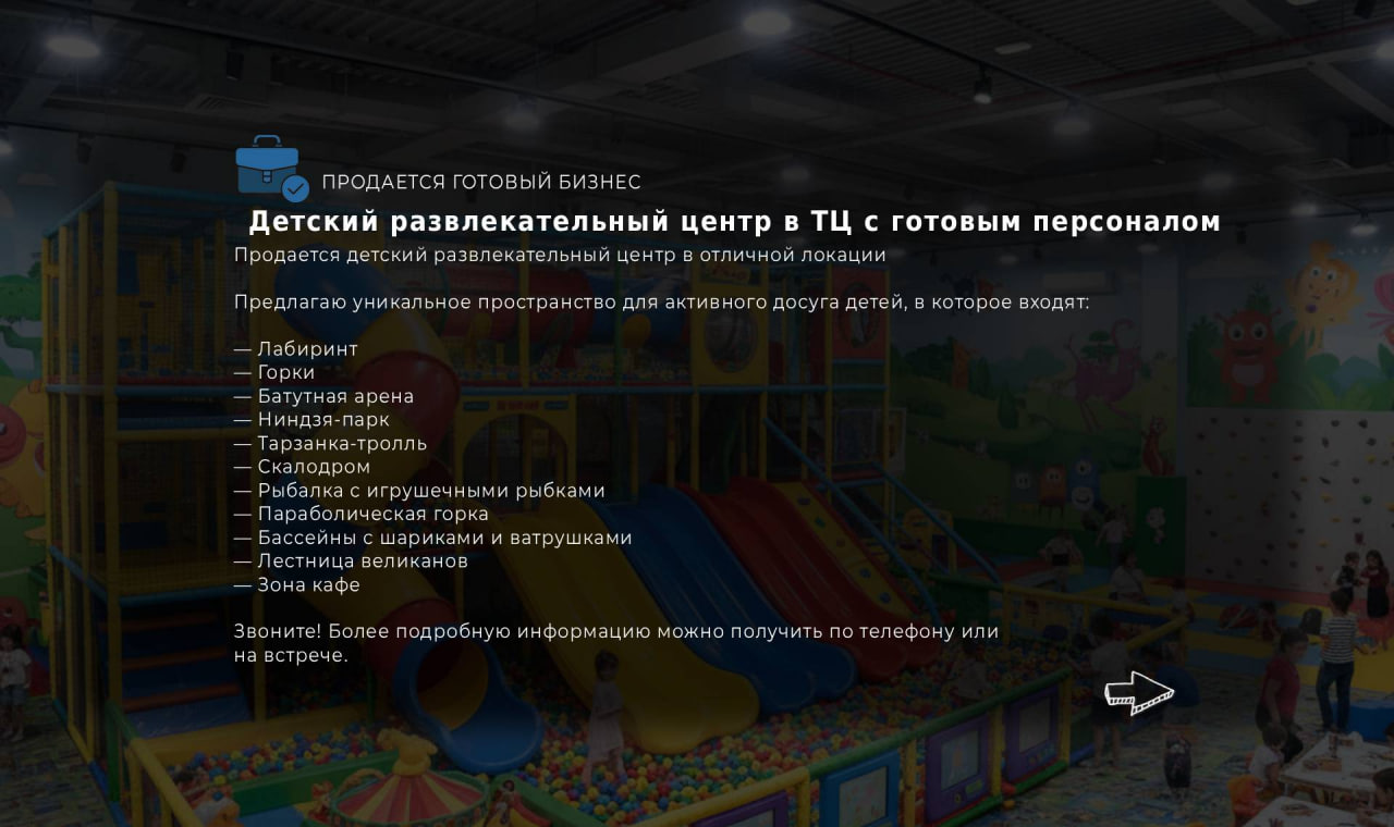 Ваш шанс заняться прибыльным бизнесом в сфере детских развлечений. Вложитесь в уже успешный проект.