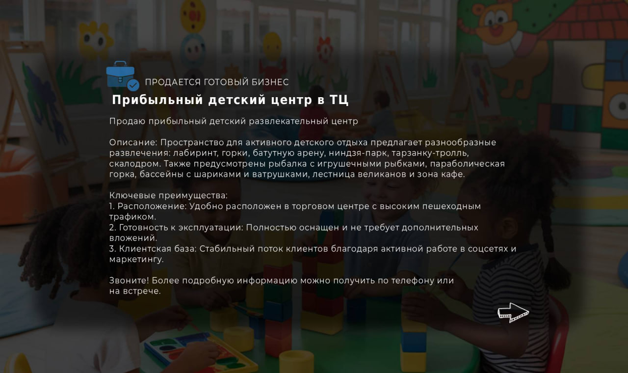 Продаю прибыльный детский развлекательный центр