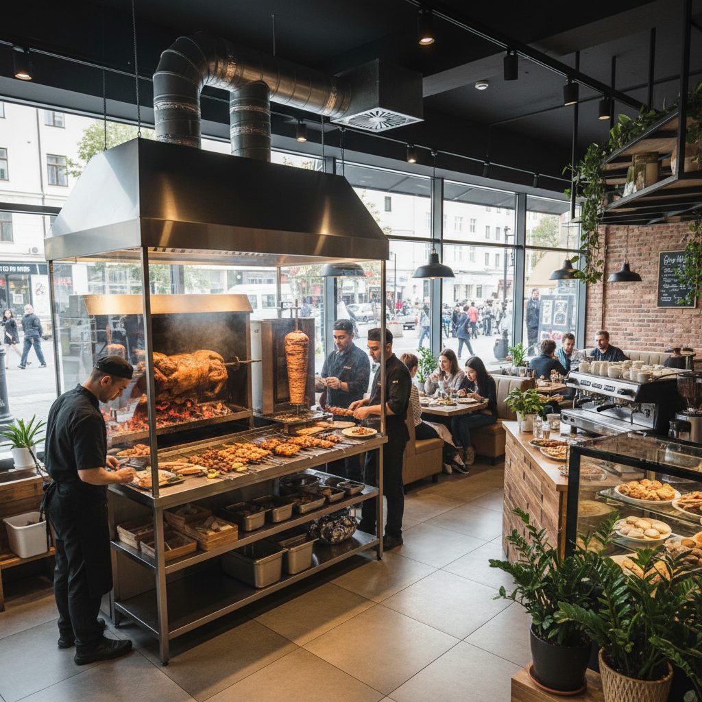 Продается готовый бизнес – действующее кафе с уникальной концепцией шашлычной, шаурмы и блюд на мангале! Это уютное заведение предназначено для ценителей и гурманов вкусного мяса. В кафе имеется возможность дополнительно расшириться на кофейню с ароматной выпечкой. Сердцем кухни является специально разработанный под заказ мангал с откидной дверцей и автоматическим механизмом вертела. Эта революционная технология позволяет запекать целого барана на углях всего за 3 часа, что значительно экономит время и гарантирует потрясающий вкус. Мощная вентиляционная система и полностью укомплектованная кухня обеспечивают бесперебойную работу, а мангал оснащен гидрофильтром в соответствии с регламентом пожарной безопасности.