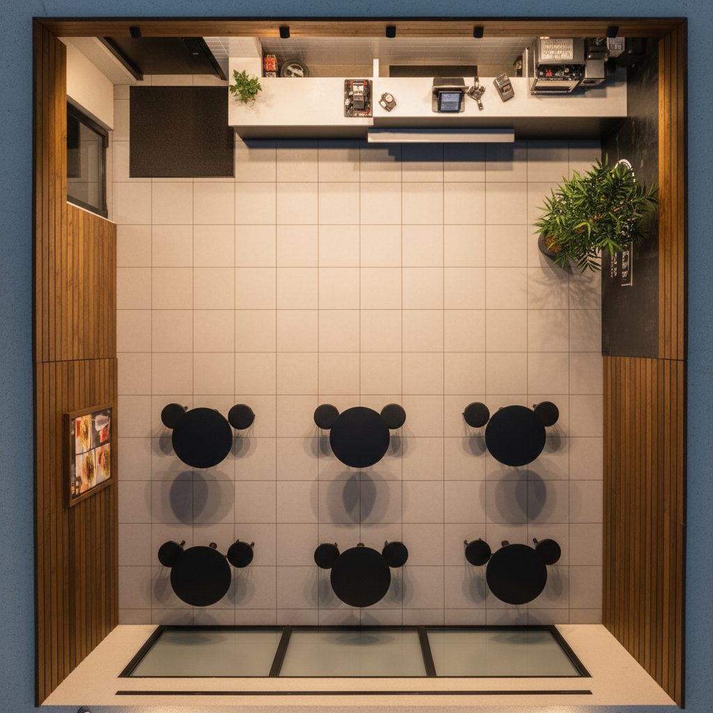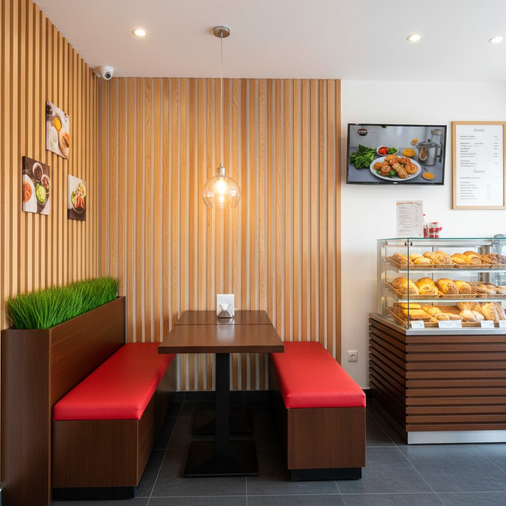 Кафе расположено в центре города рядом с памятником Подольским курсантам и архивом Министерства обороны. Площадь помещения составляет 30 кв.м, из которых 15 кв.м отведено под зал для посетителей и 15 кв.м под кухню. Все зонировано и оборудовано для эффективной работы.