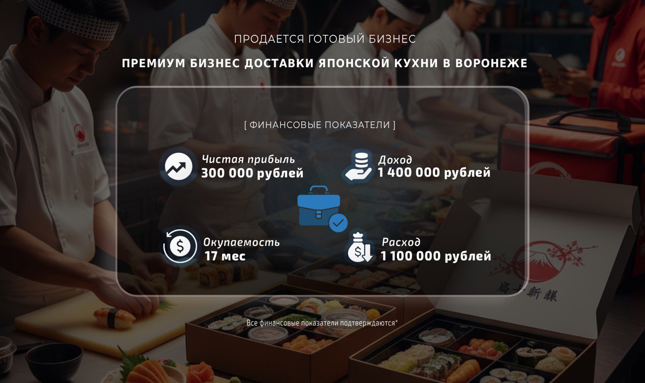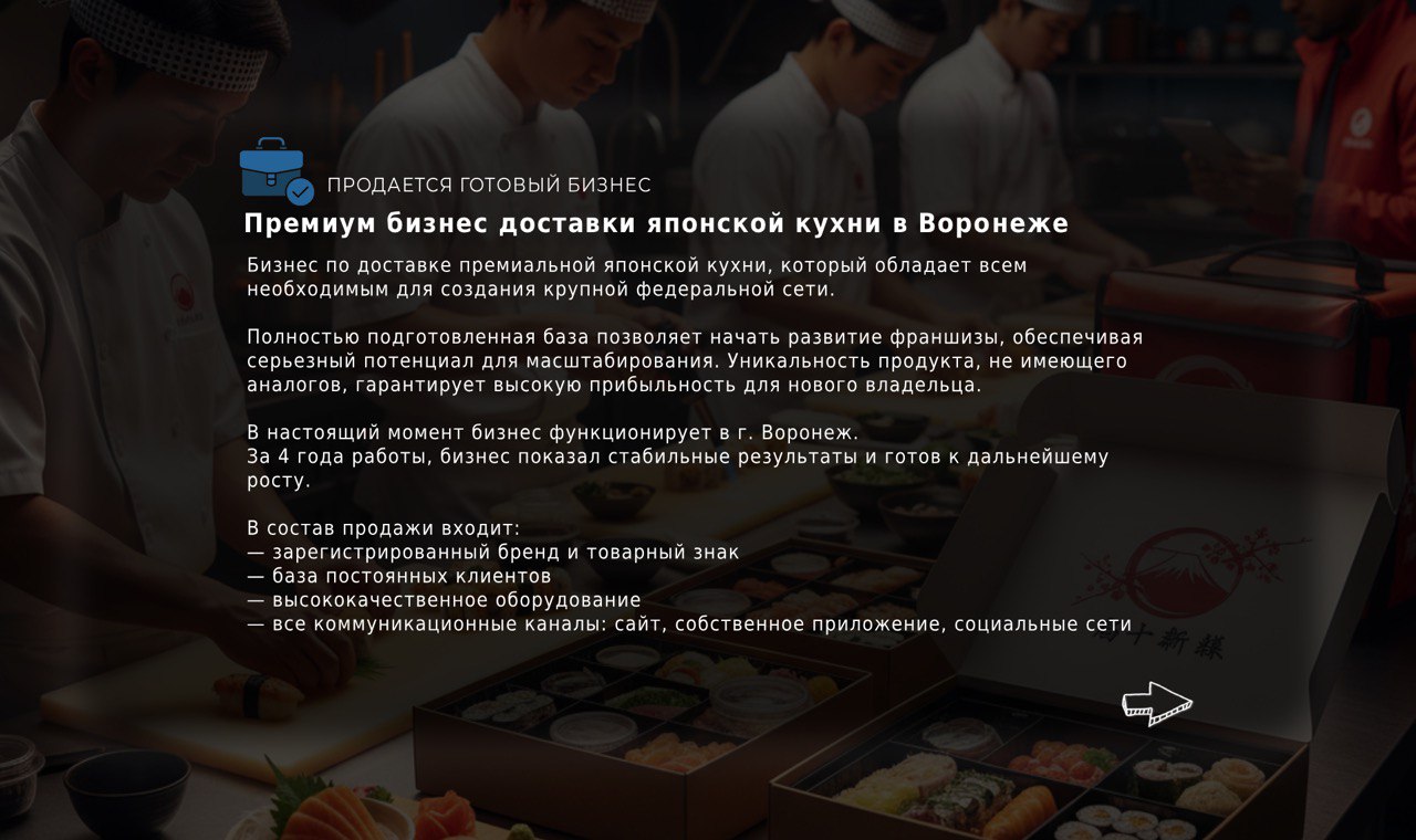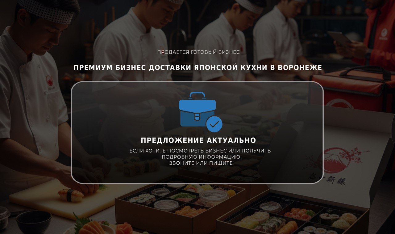 Бизнес по доставке премиальной японской кухни, который обладает всем необходимым для создания крупной федеральной сети.