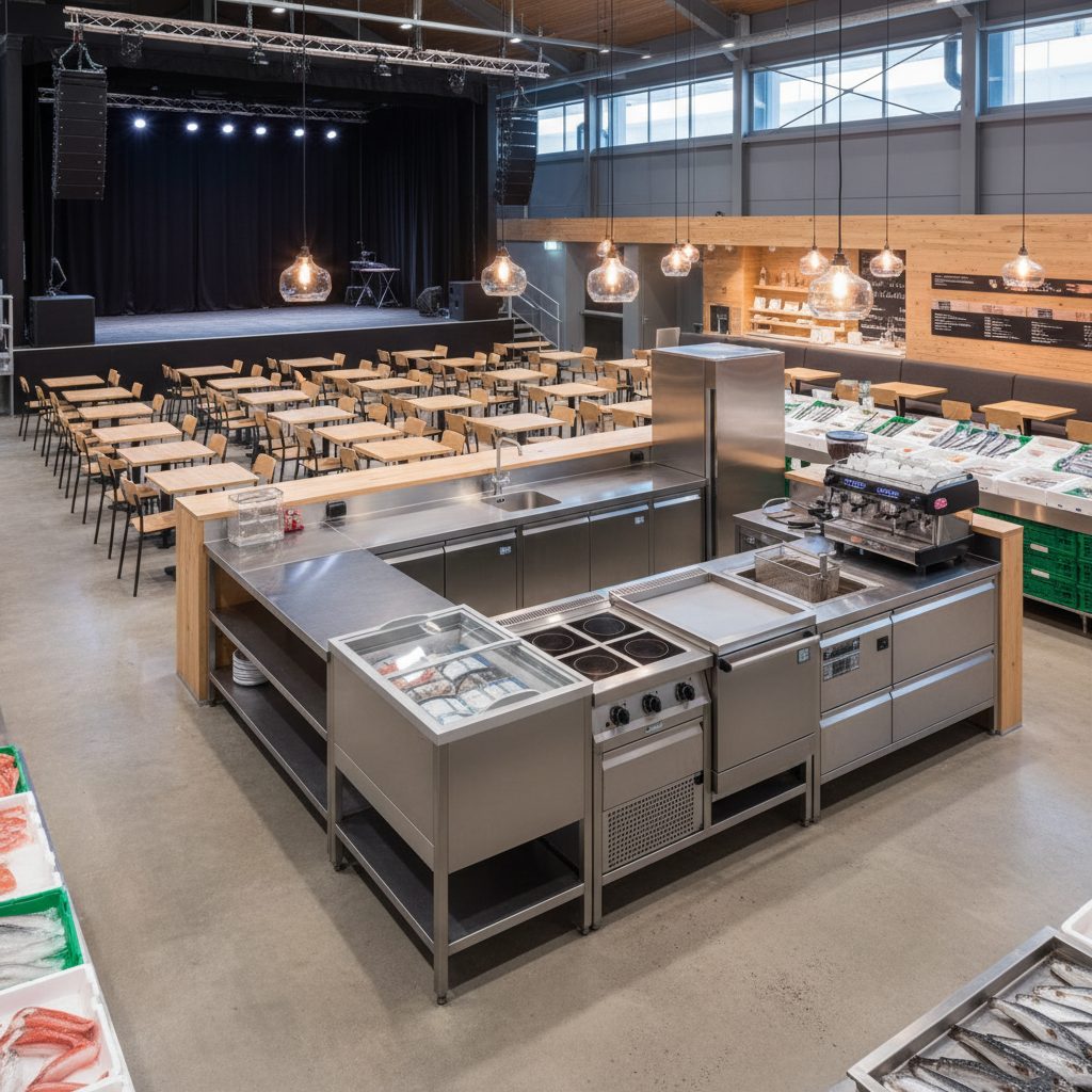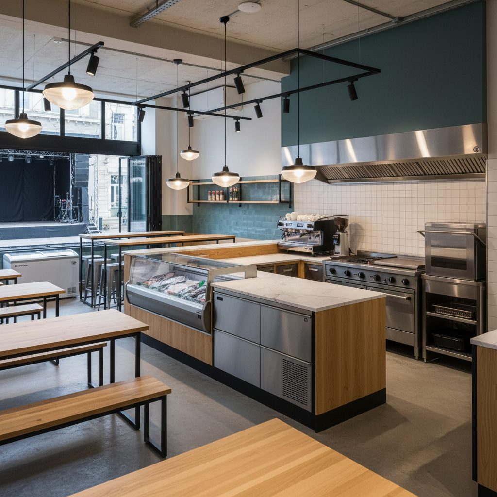 Помещение площадью 30 квадратных метров удобно зонировано для эффективной работы кухни и зоны упаковки. Ремонт выполнен в современном стиле, что создает приятную атмосферу для персонала. В наличии все необходимое оборудование для приготовления и доставки блюд, включая профессиональные плиты, холодильные установки и упаковочные материалы.