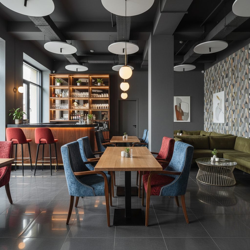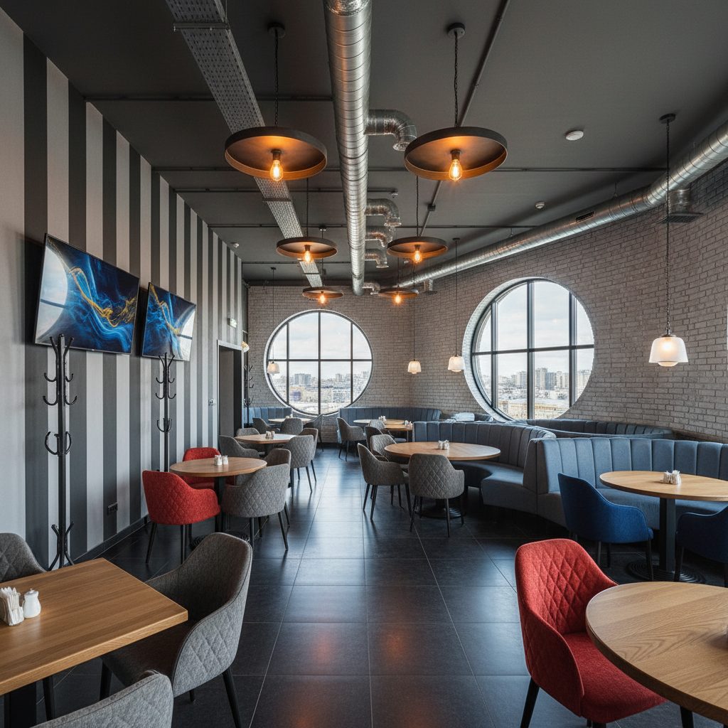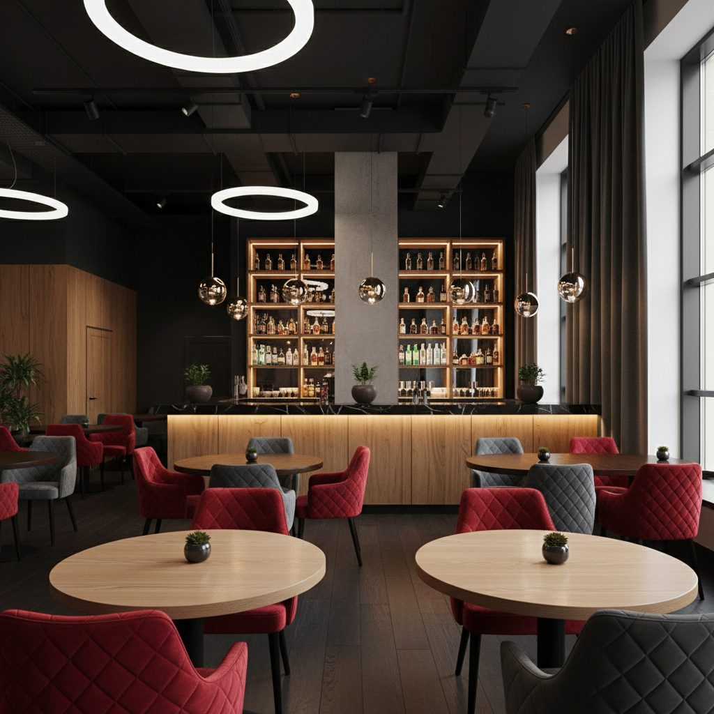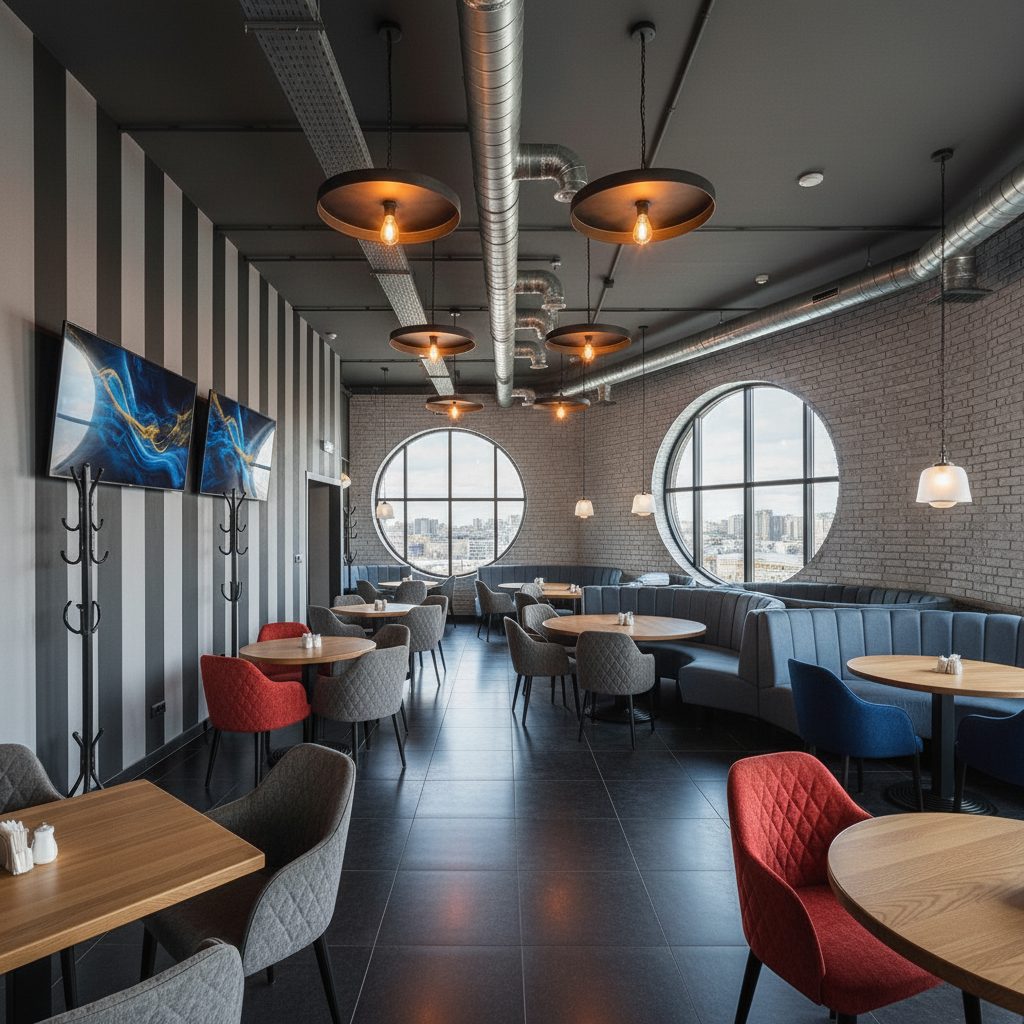 Рестобар занимает площадь 301 м² и дополнительно имеет 100 м² балкон. Включает в себя торговый зал, производственные помещения, офис и склад. Помещение находится на 3-м этаже торгового центра, где также расположены известные арендаторы. Укомплектовано профессиональным оборудованием, аудиовизуальной техникой и мебелью. Имеется сцена для мероприятий, а также все необходимые коммуникации и системы безопасности.