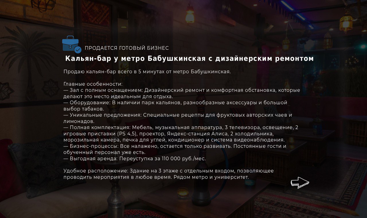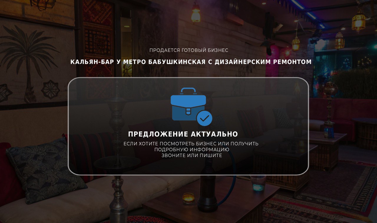 Продаю кальян-бар всего в 5 минутах от метро Бабушкинская.