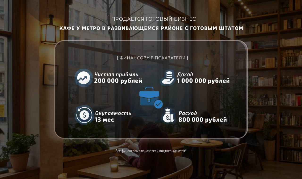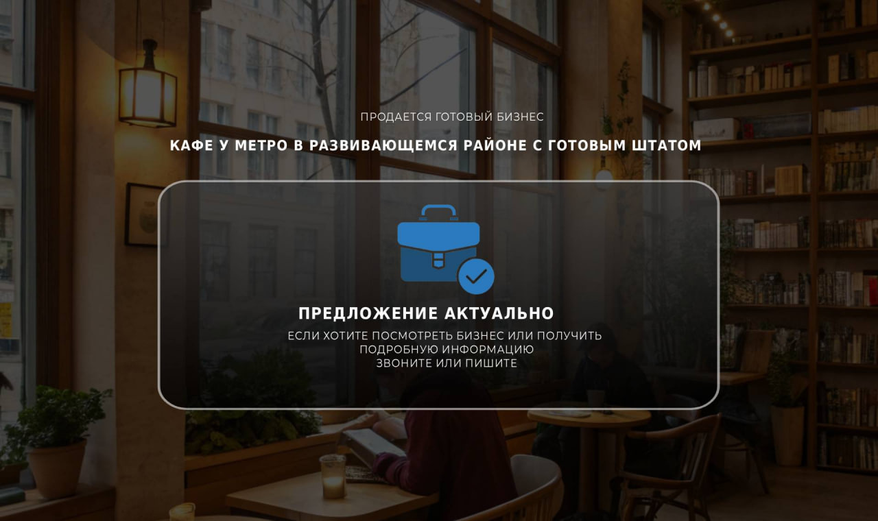Продаю кафе рядом с метро в районе, который активно развивается.