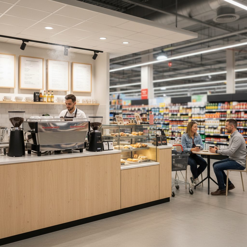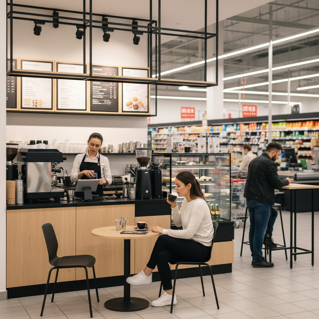 Кофейня расположена в предкассовой зоне крупного гипермаркета, что гарантирует высокий трафик и постоянный поток покупателей. У нас нет конкурентов в непосредственной близости, что создает дополнительные преимущества для роста. Все процессы автоматизированы, а оборудование находится в собственности, что позволяет работать без лишних затрат.