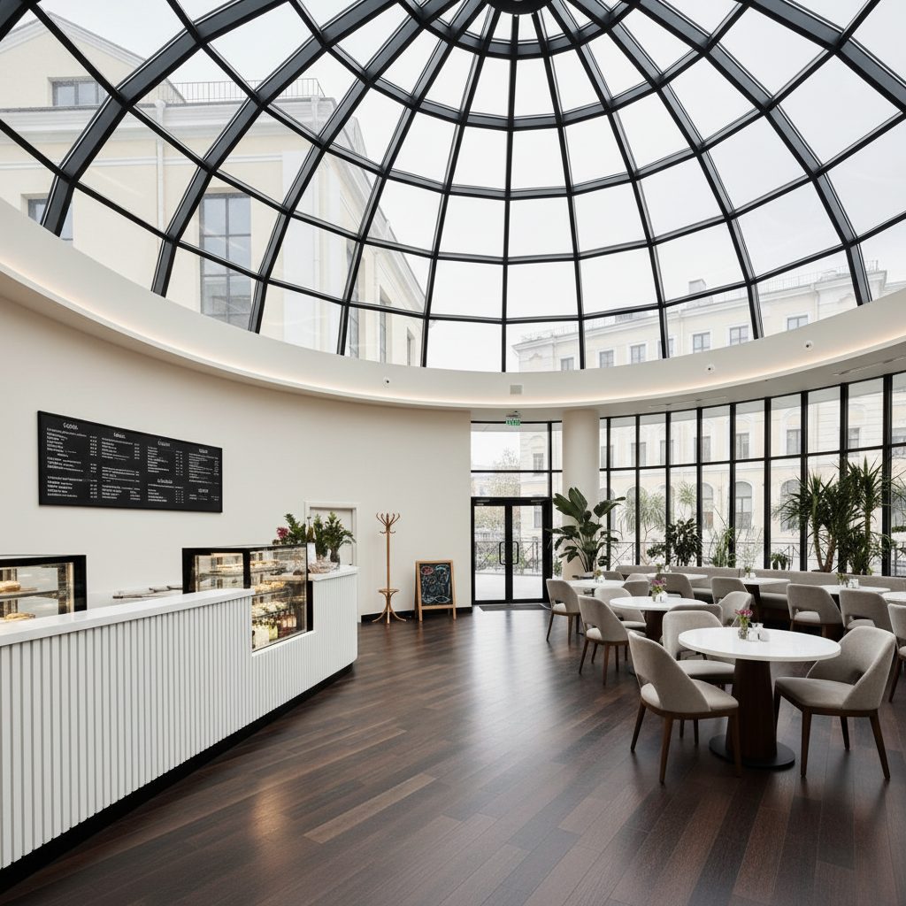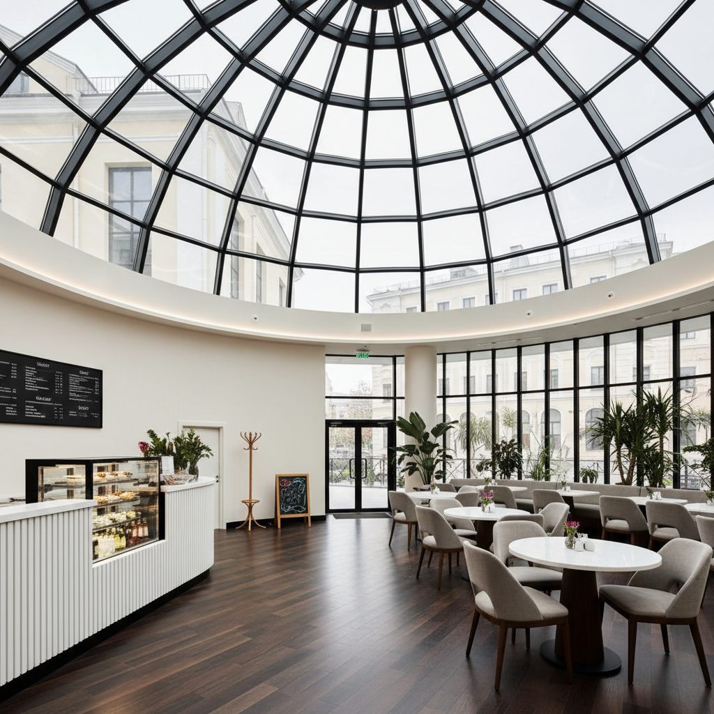 Предлагаю вашему вниманию стильную кофейню, расположенную в современном жилом комплексе в Москве.