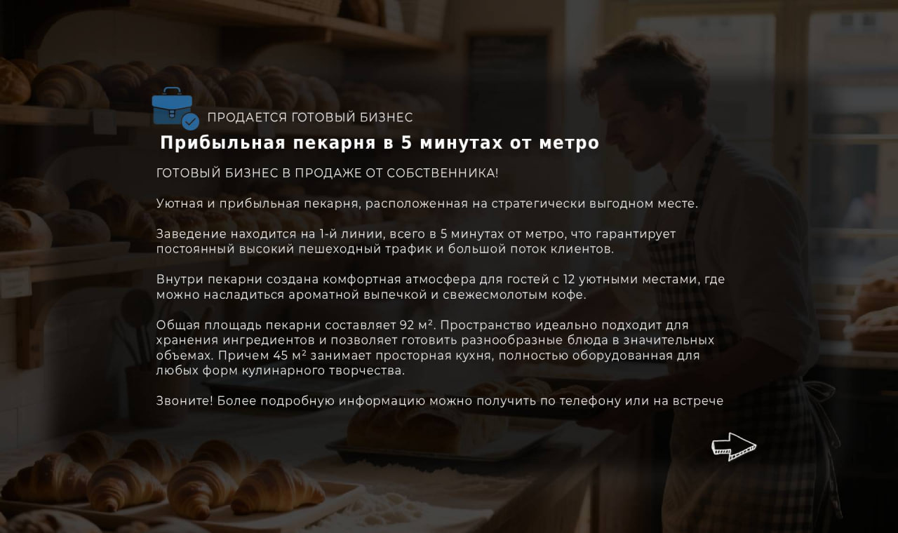 Уютная и прибыльная пекарня, расположенная на стратегически выгодном месте.
