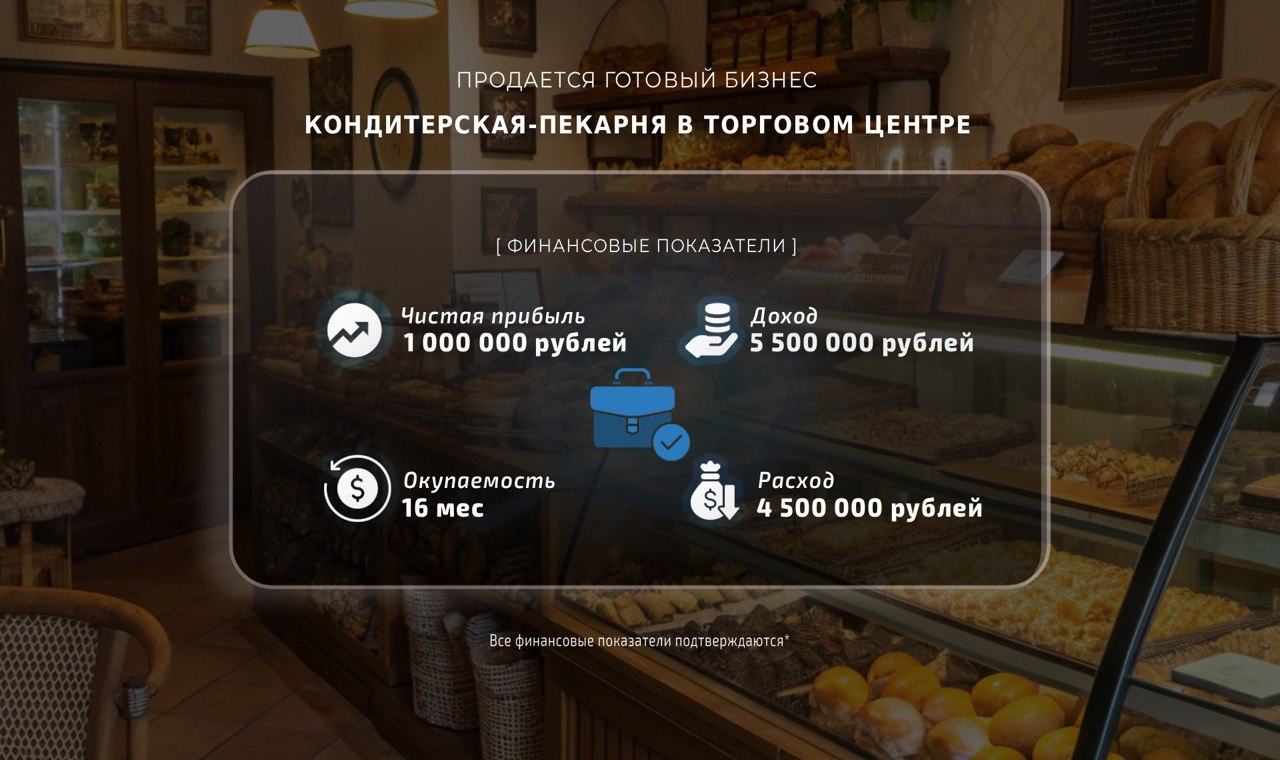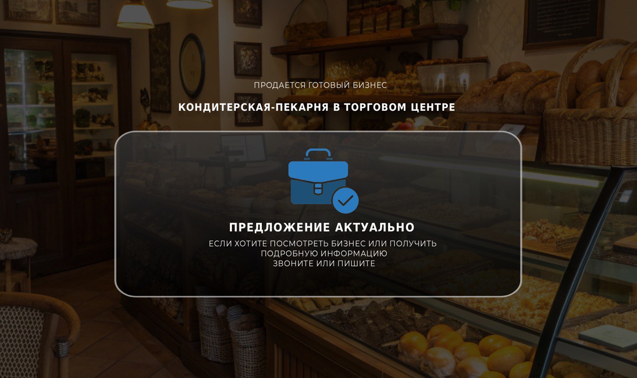 Предлагаю приобрести кондитерскую-пекарню, расположенную в популярном торговом центре.