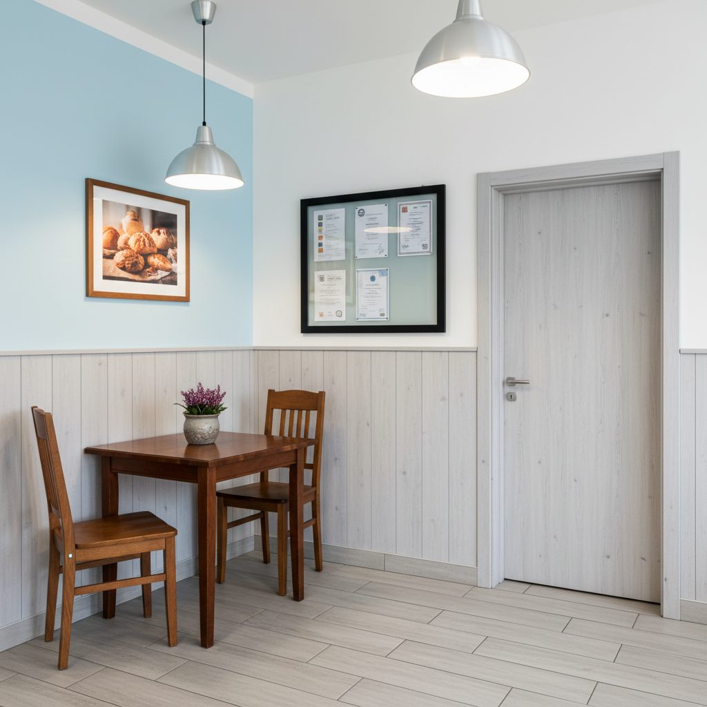 Пекарня располагается в светлом и ухоженном помещении площадью 100 м². Она оснащена 4 столиками на 12 посадочных мест, которые при желании можно увеличить. Также в помещении есть 2 санузла, что обеспечивает комфорт для клиентов.