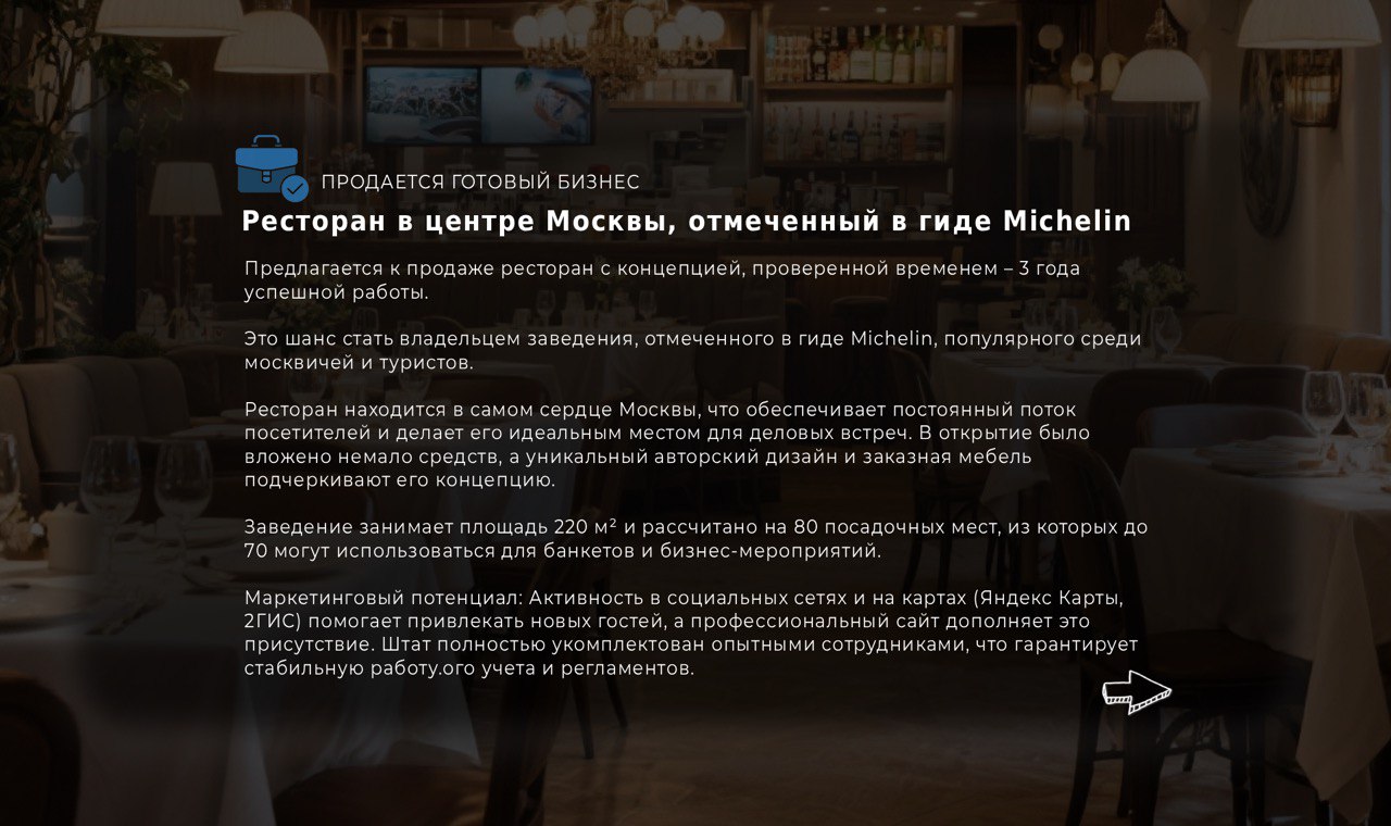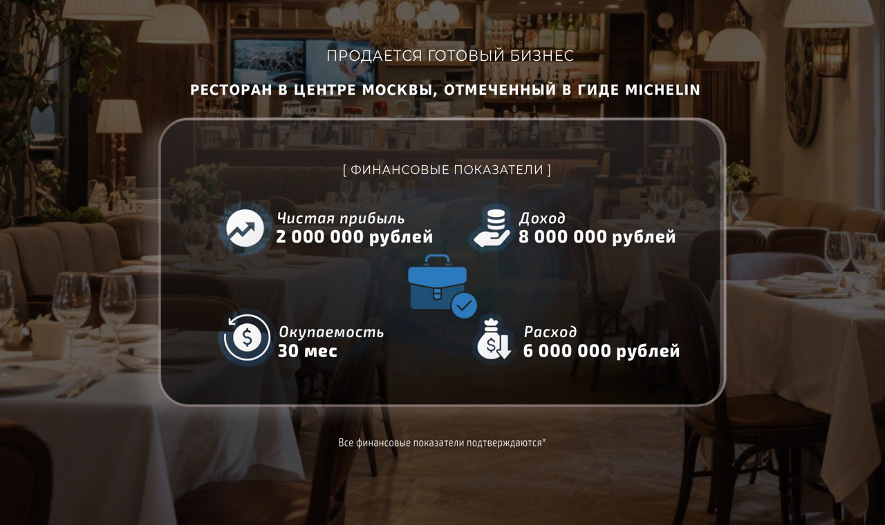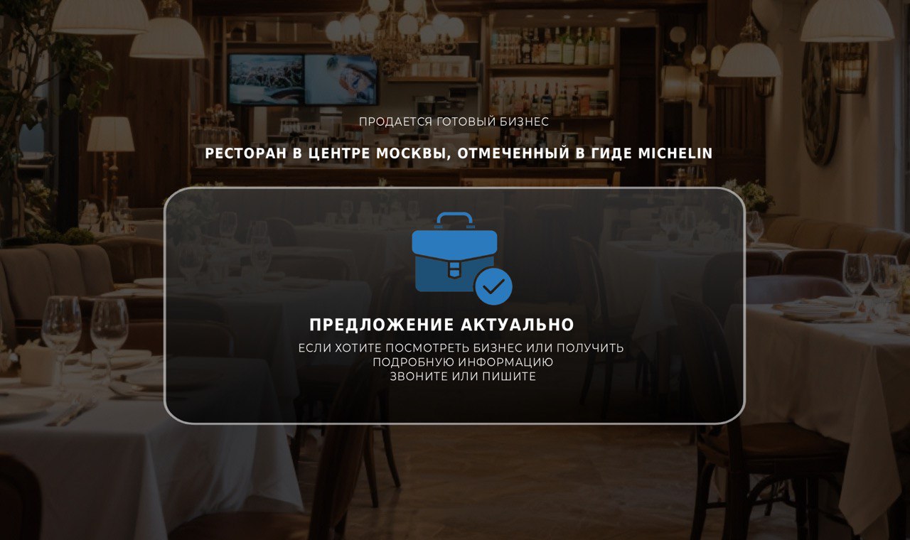 Это шанс стать владельцем заведения, отмеченного в гиде Michelin, популярного среди москвичей и туристов.