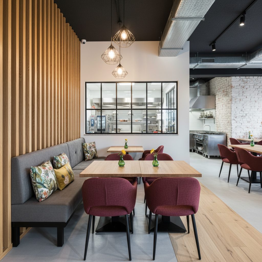 Внутри ресторана высокие потолки, большой зал с открытой планировкой и современный ремонт. Мы отлично работаем с доставкой внутри ЖК, который заселен в основном молодыми и платежеспособными семьями.