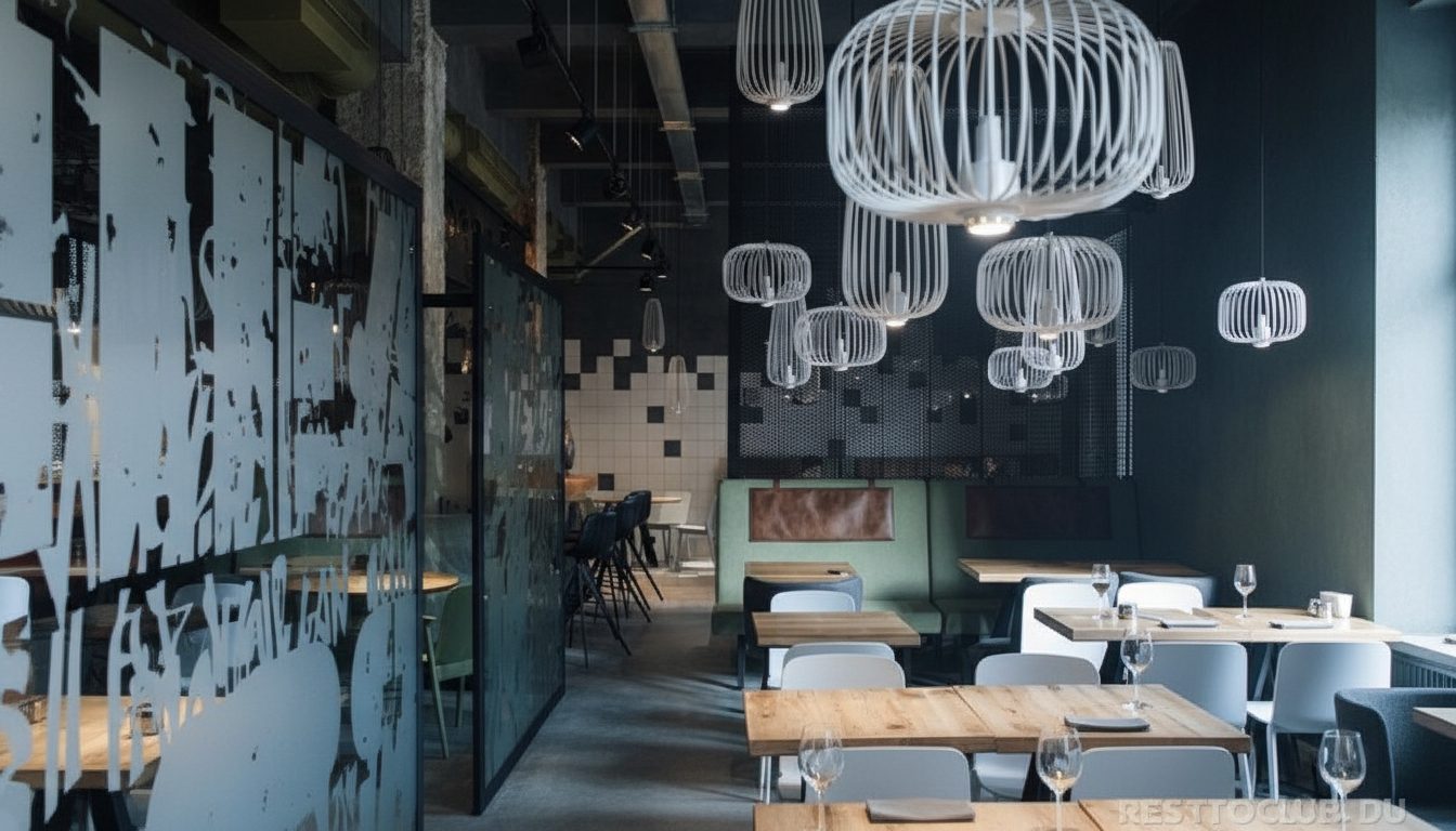 Заведение выполнено в нескольких разнообразных концептуальных решениях и занимает несколько залов на 2 этажах:
