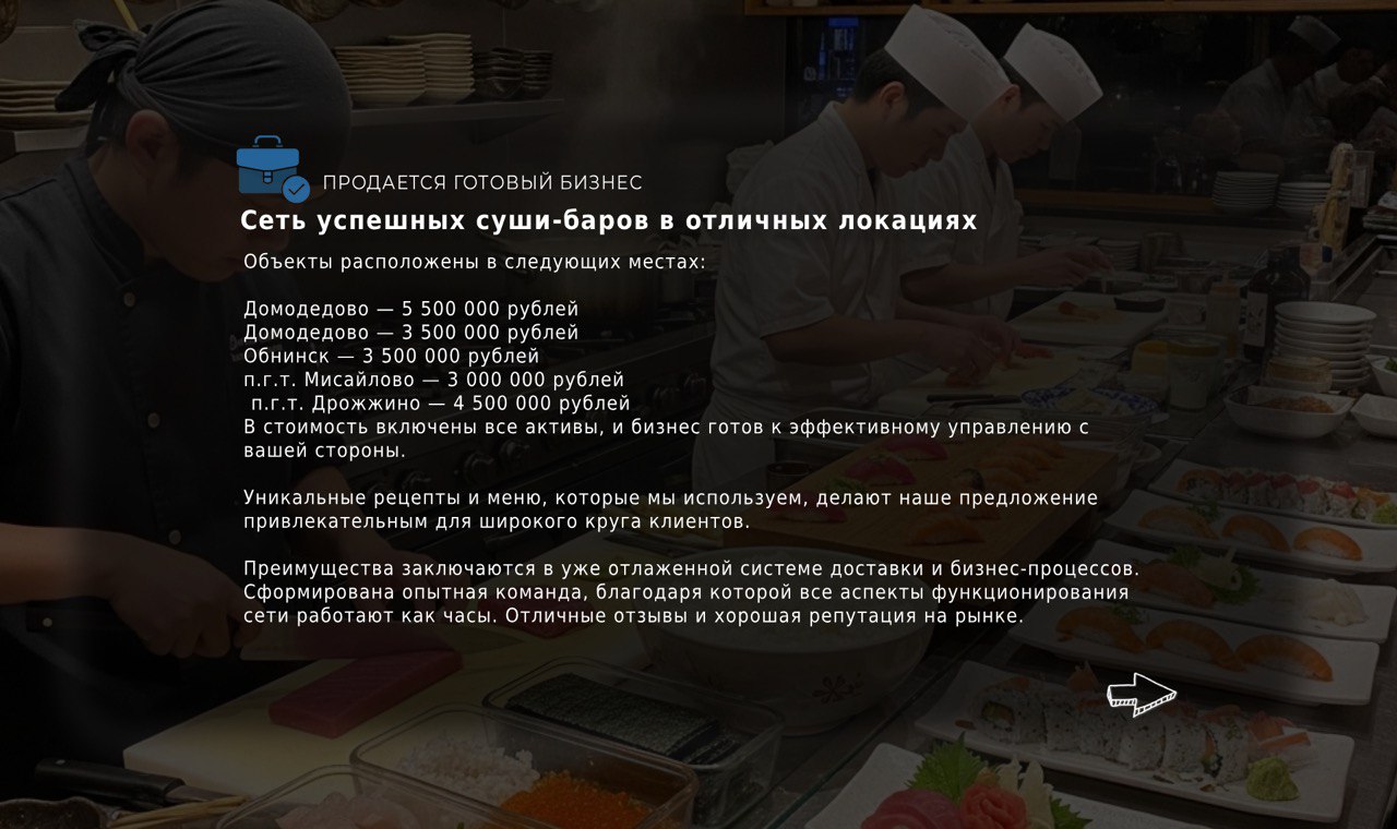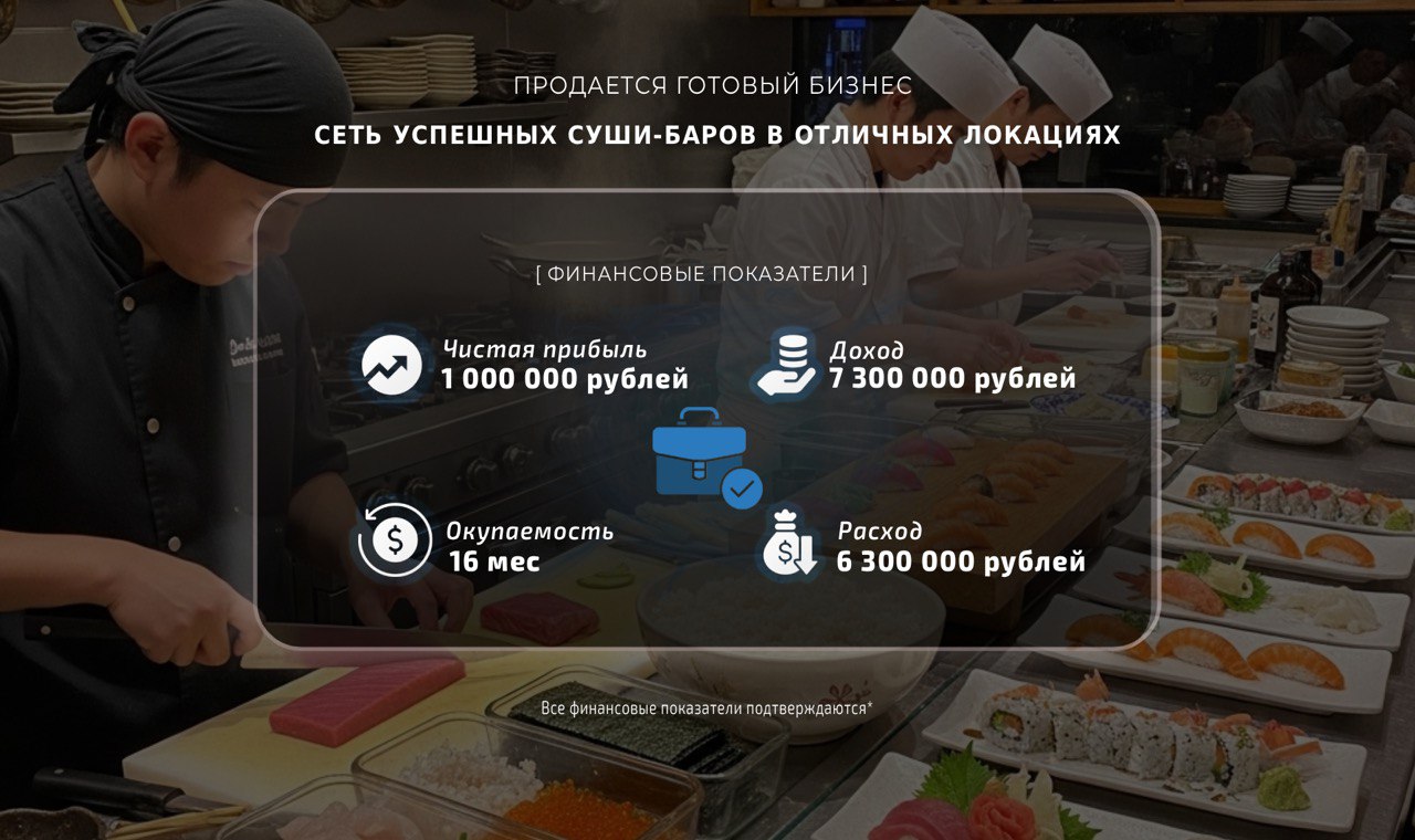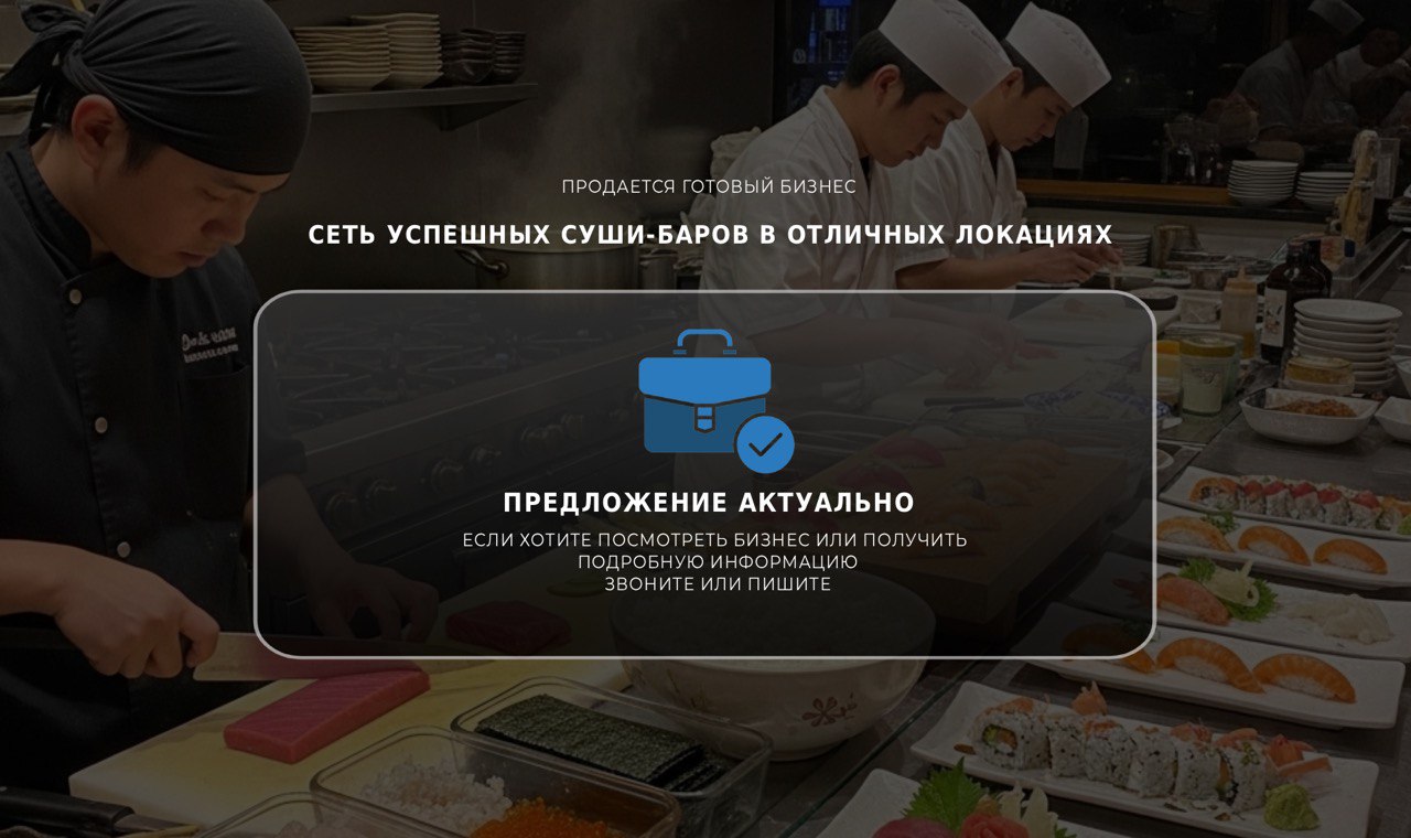 Продаю сеть успешных суши-баров с возможностью приобретения отдельных точек.