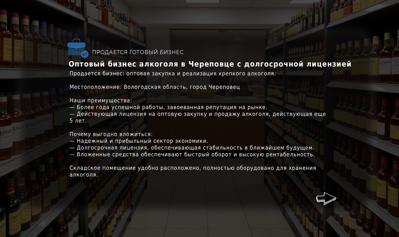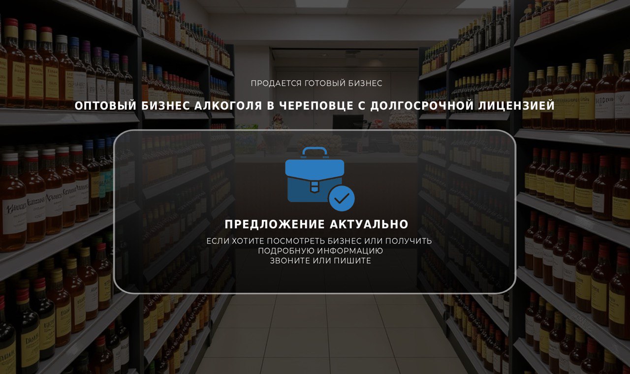 Продается бизнес: оптовая закупка и реализация крепкого алкоголя.