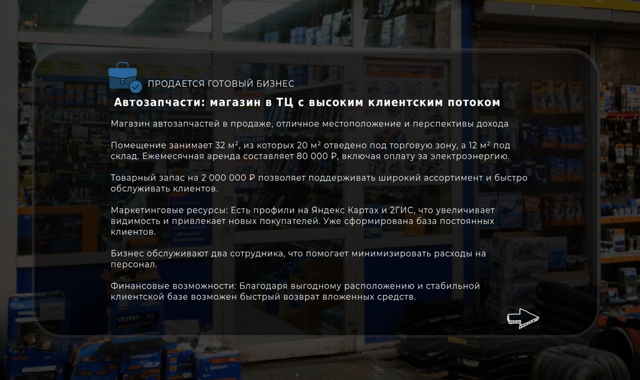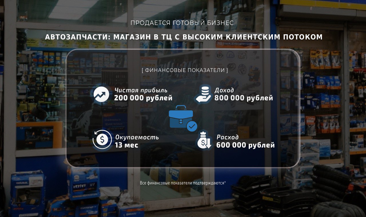 Магазин автозапчастей в продаже, отличное местоположение и перспективы дохода