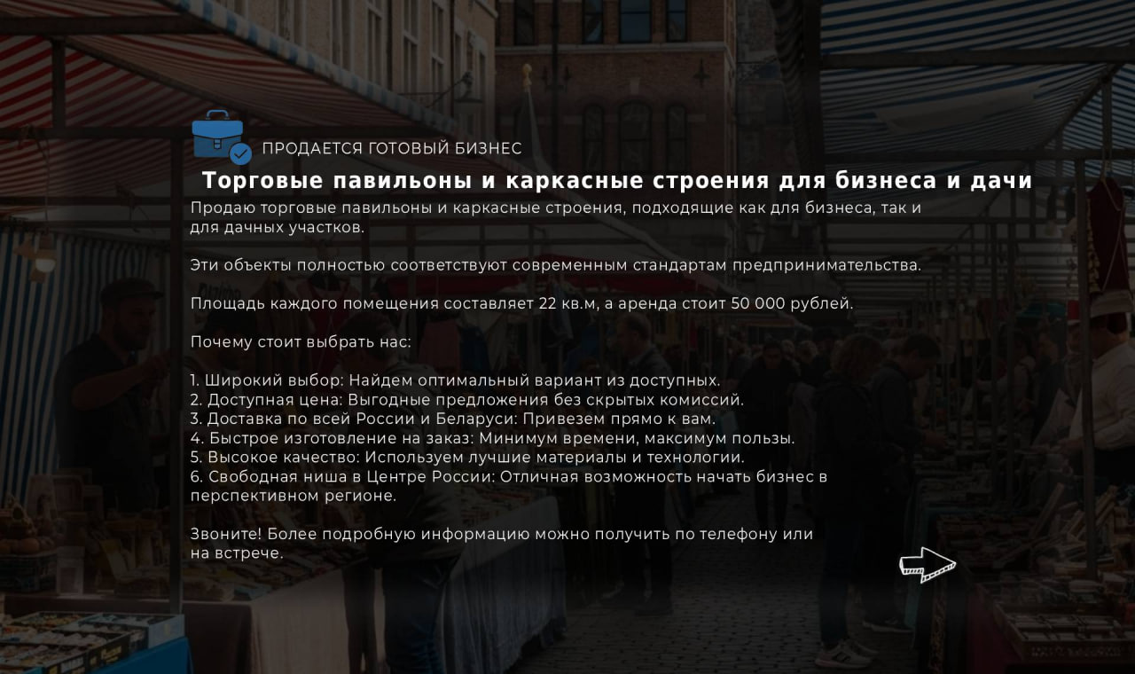 Продаю торговые павильоны и каркасные строения, подходящие как для бизнеса, так и для дачных участков.