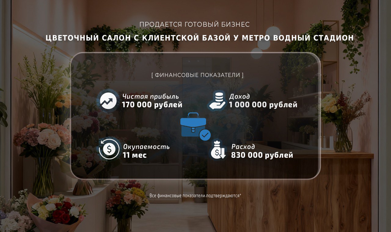 Продаю цветочный салон с успешной историей работы рядом с метро.