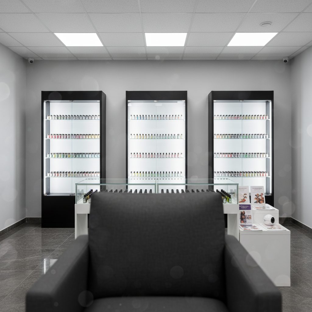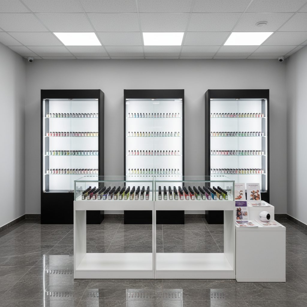 Магазины расположены в центральных торговых центрах города. Площадь каждого магазина составляет 30 кв.м, что позволяет эффективно использовать пространство для размещения товара и оборудования.