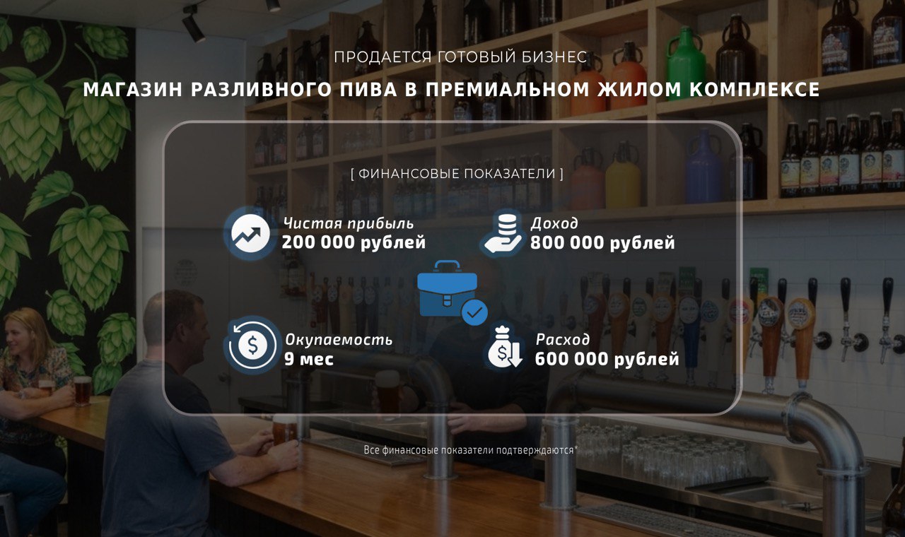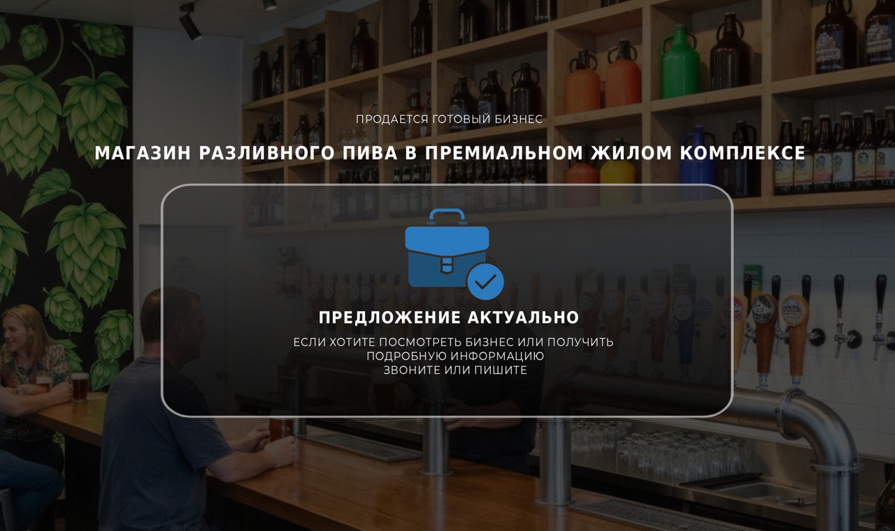 Продаю прибыльный магазин разливного пива, расположенный в престижном жилом комплексе.