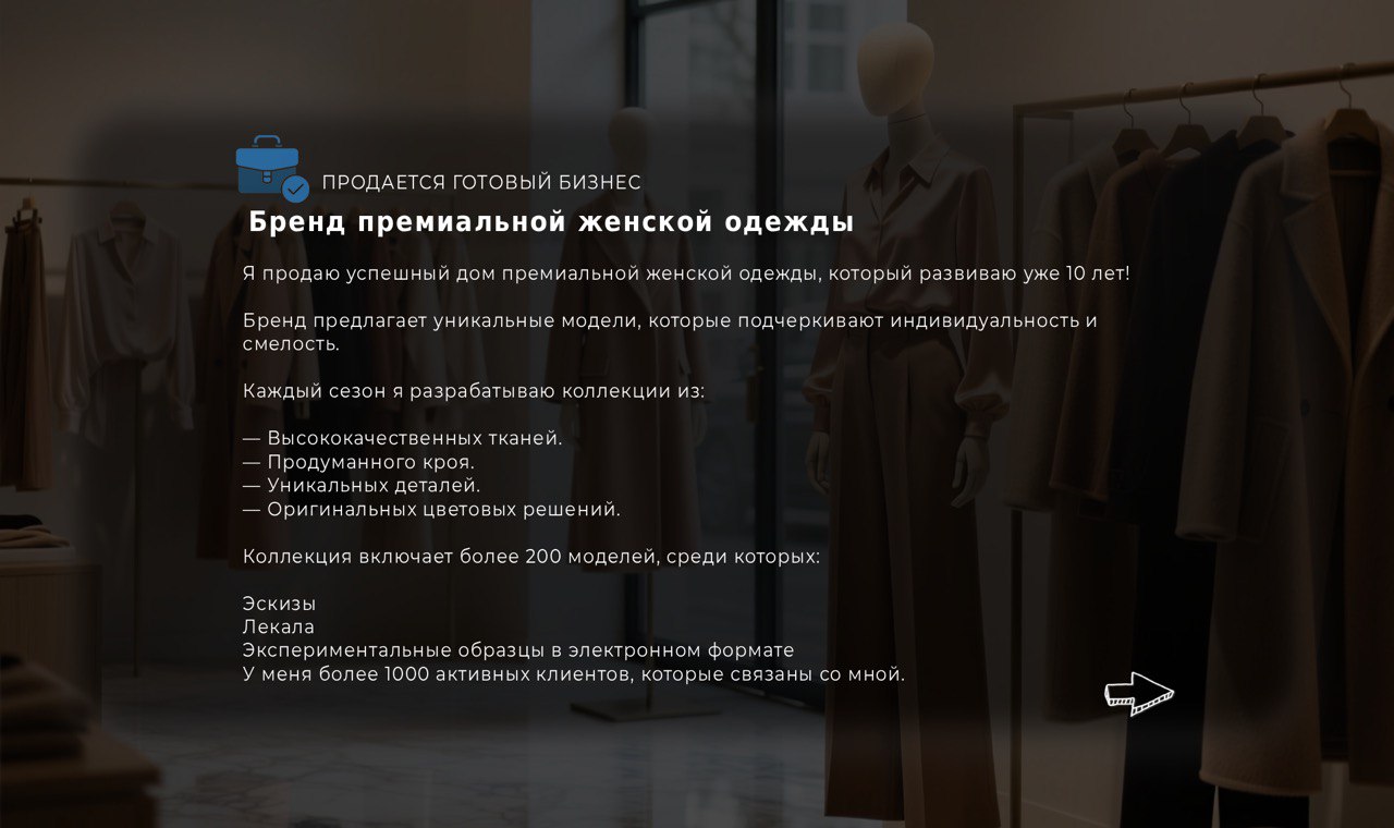 Я продаю успешный дом премиальной женской одежды, который развиваю уже 10 лет!