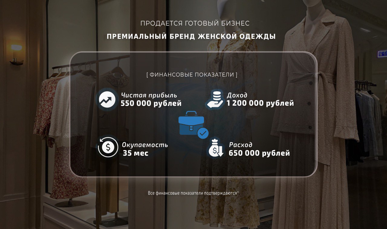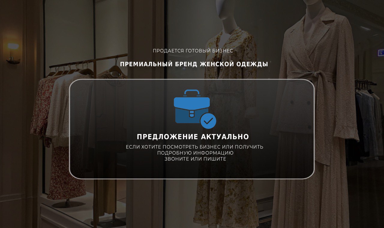 Успешный модный дом премиальной женской одежды, который продается по сниженной цене.