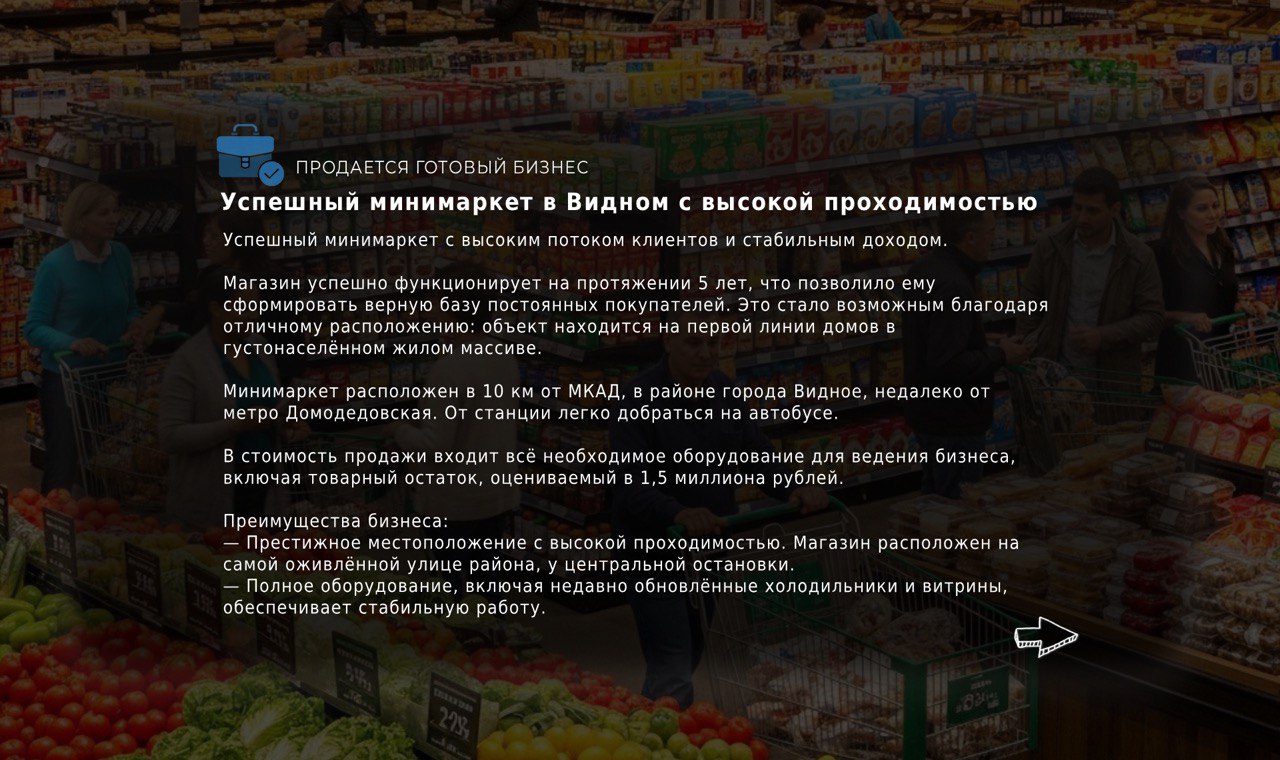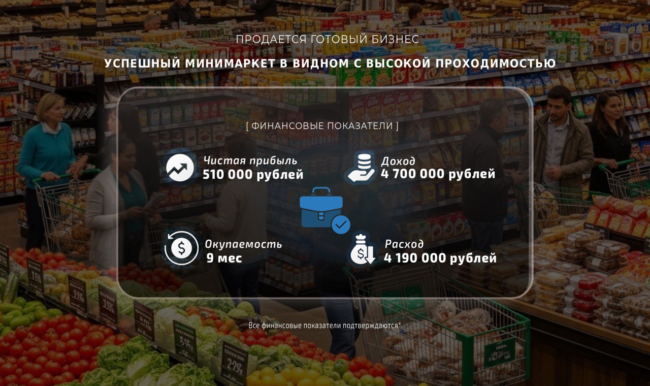 Успешный минимаркет с высоким потоком клиентов и стабильным доходом.
