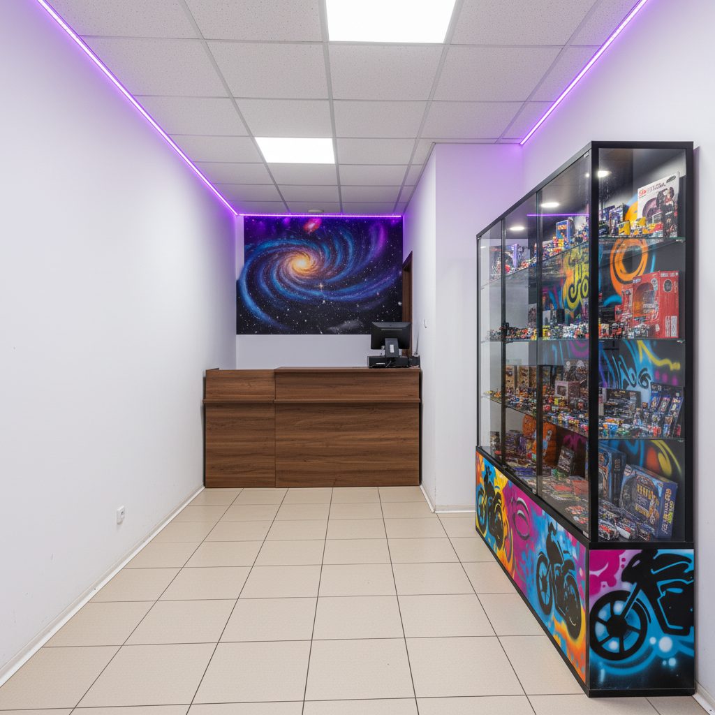 Предлагаю вашему вниманию табачный магазин, расположенный в подвале недалеко от входа. Отличное место с высоким трафиком благодаря соседям: популярным маркетплейсам, парикмахерской и кафе самообслуживания.