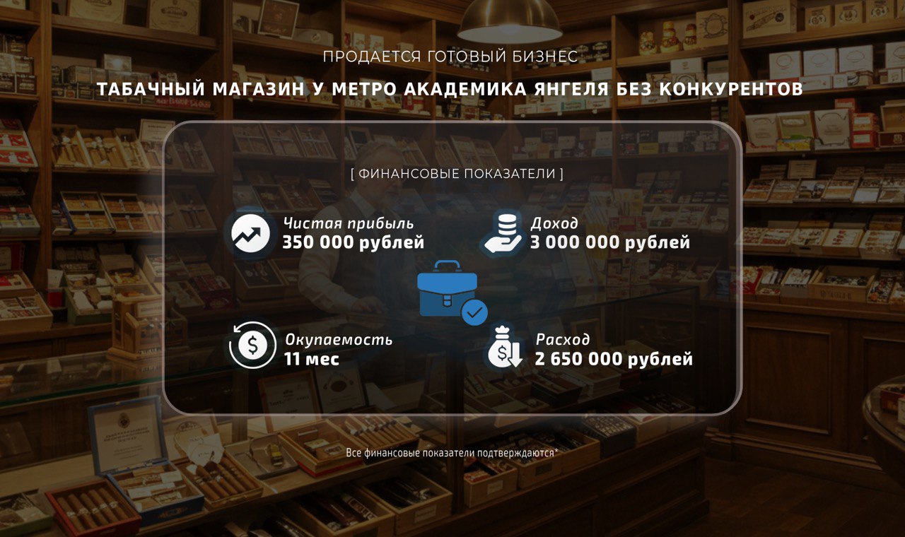 — Цена бизнеса: 3 700 000 рублей.