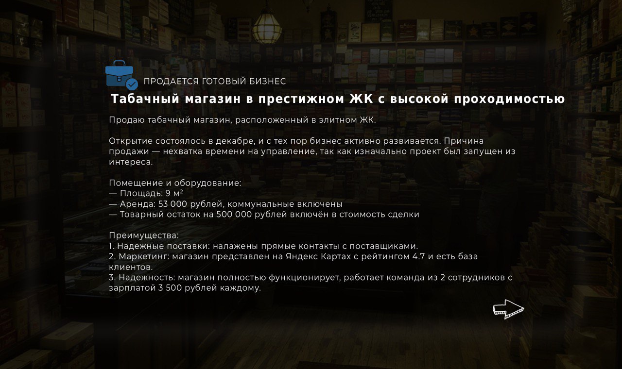 Продаю табачный магазин, расположенный в элитном ЖК.