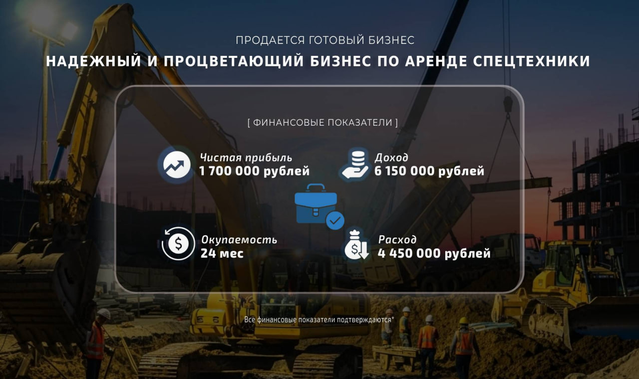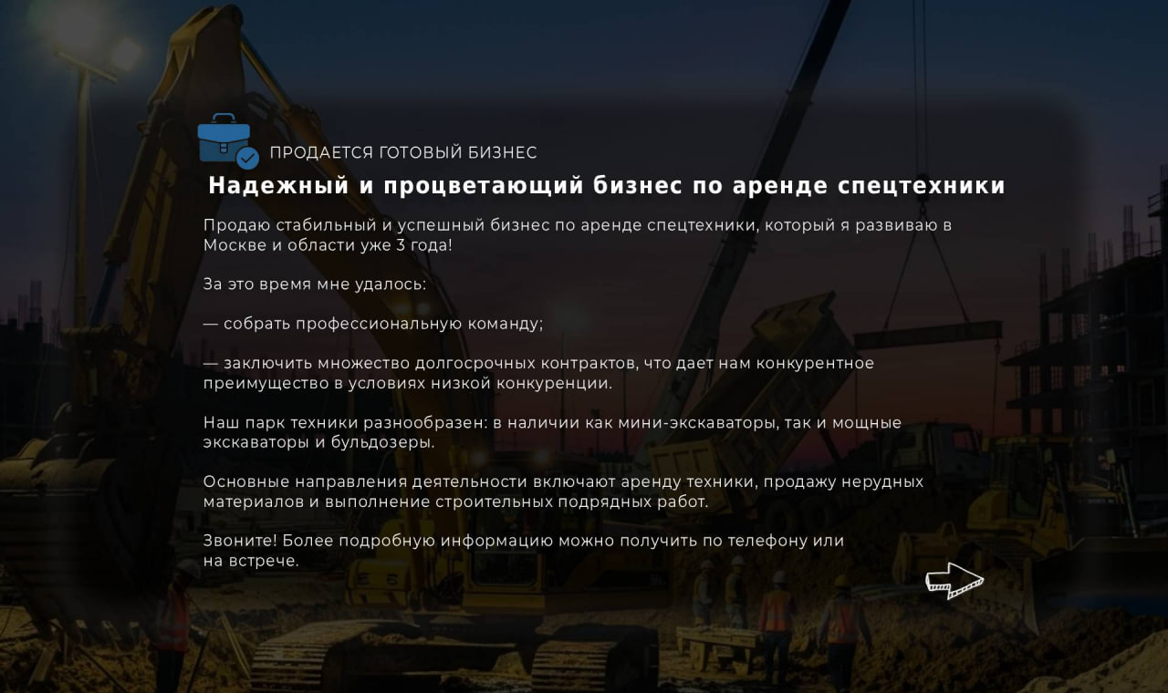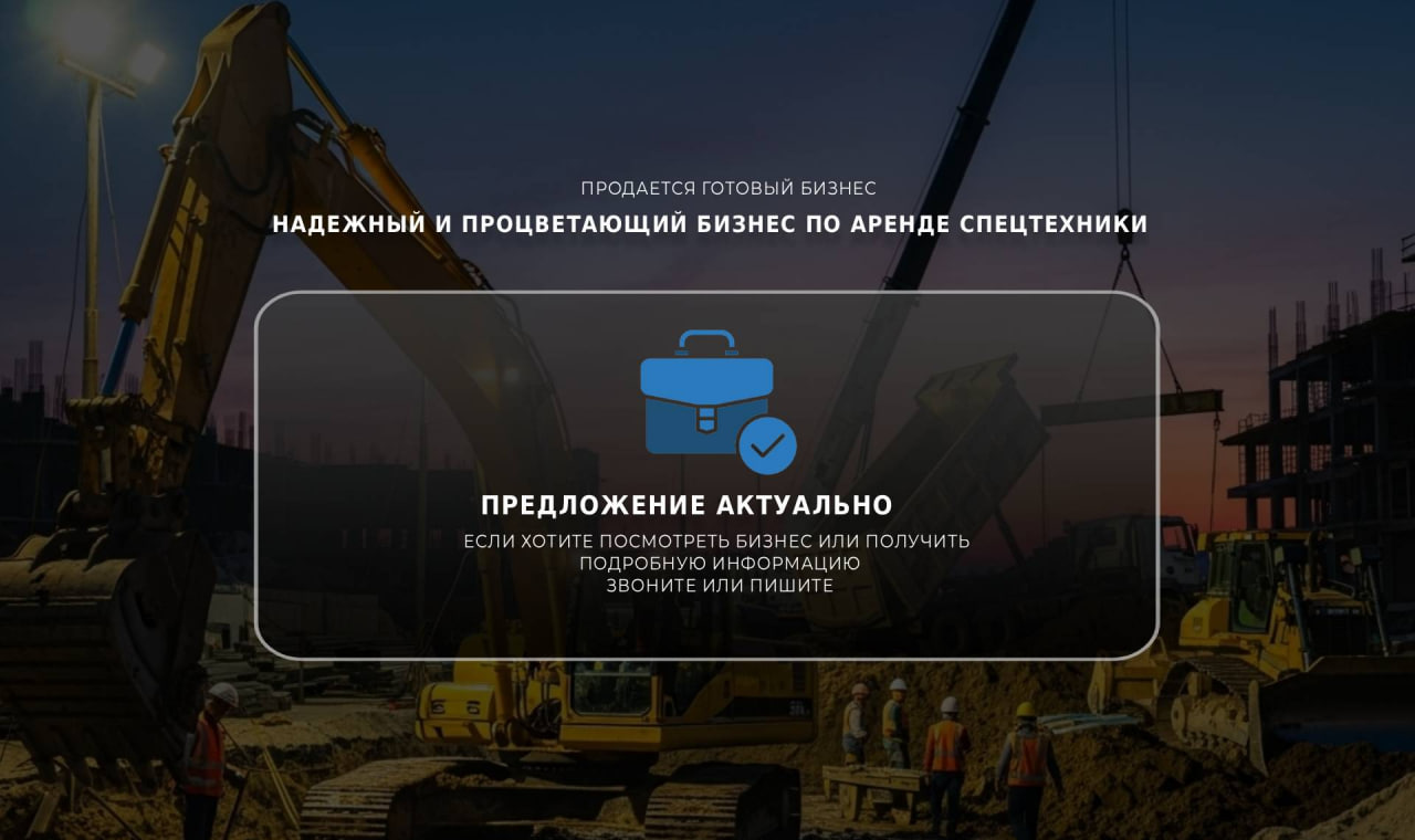 Продаю стабильный и успешный бизнес по аренде спецтехники, который я развиваю в Москве и области уже 3 года!