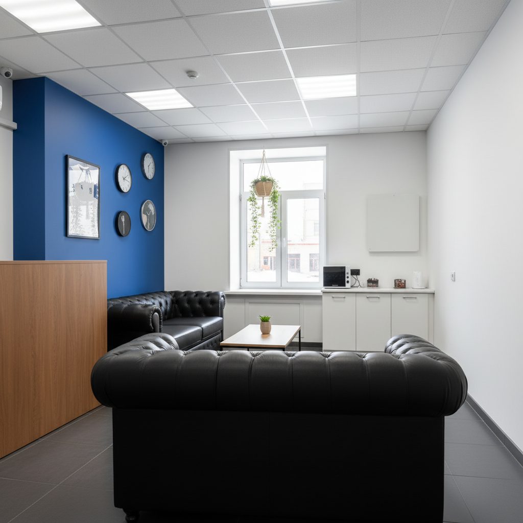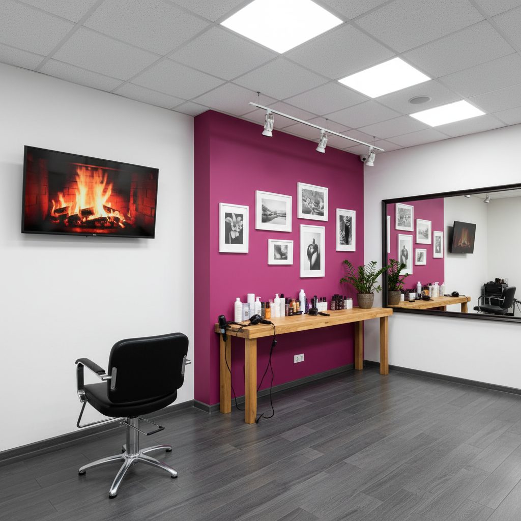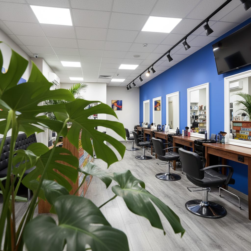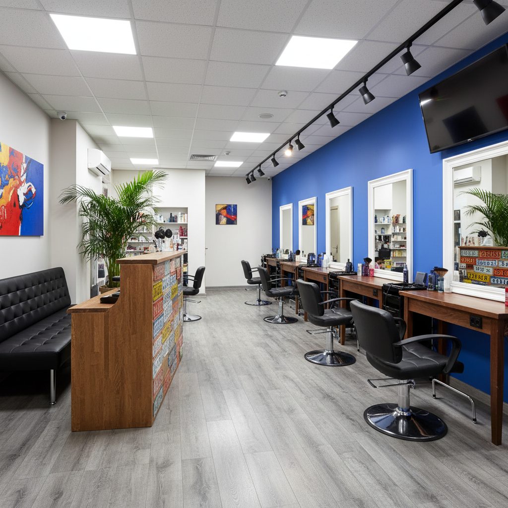 Локация: 3 минуты пешком от метро, отличная видимость благодаря яркой вывеске. Площадь 42 кв.м включает 4 рабочих места, зону ожидания с телевизором и приставкой, кофемашину, туалет и комнату для персонала.