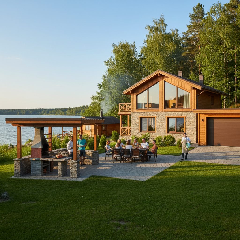 Предлагается к продаже действующий гостевой дом на живописном берегу озера, который идеально подходит для инвесторов, желающих развивать загородный бизнес. Площадь объекта составляет 337,3 м², а участок занимает 24,6 сотки. Гостевой дом вмещает до 20 человек и включает в себя кухню-столовую, каминный зал, джакузи, а также несколько номеров и люксов. На территории также расположены баня, гараж, уличная столовая и зона для барбекю. Объект ранее использовался для приема гостей, а сейчас активно задействован для проведения мероприятий, таких как свадьбы и праздники, что открывает дополнительные возможности для получения дохода.